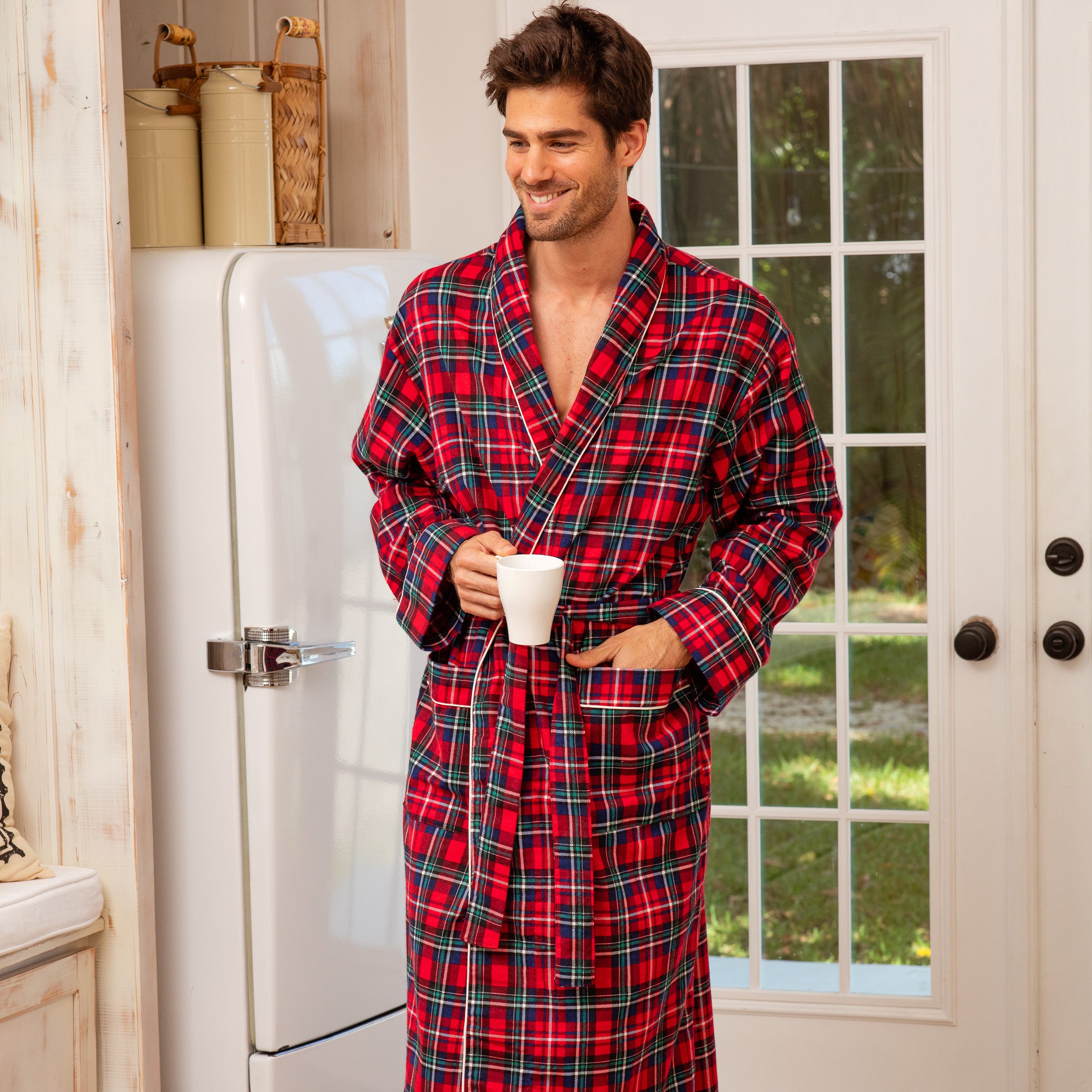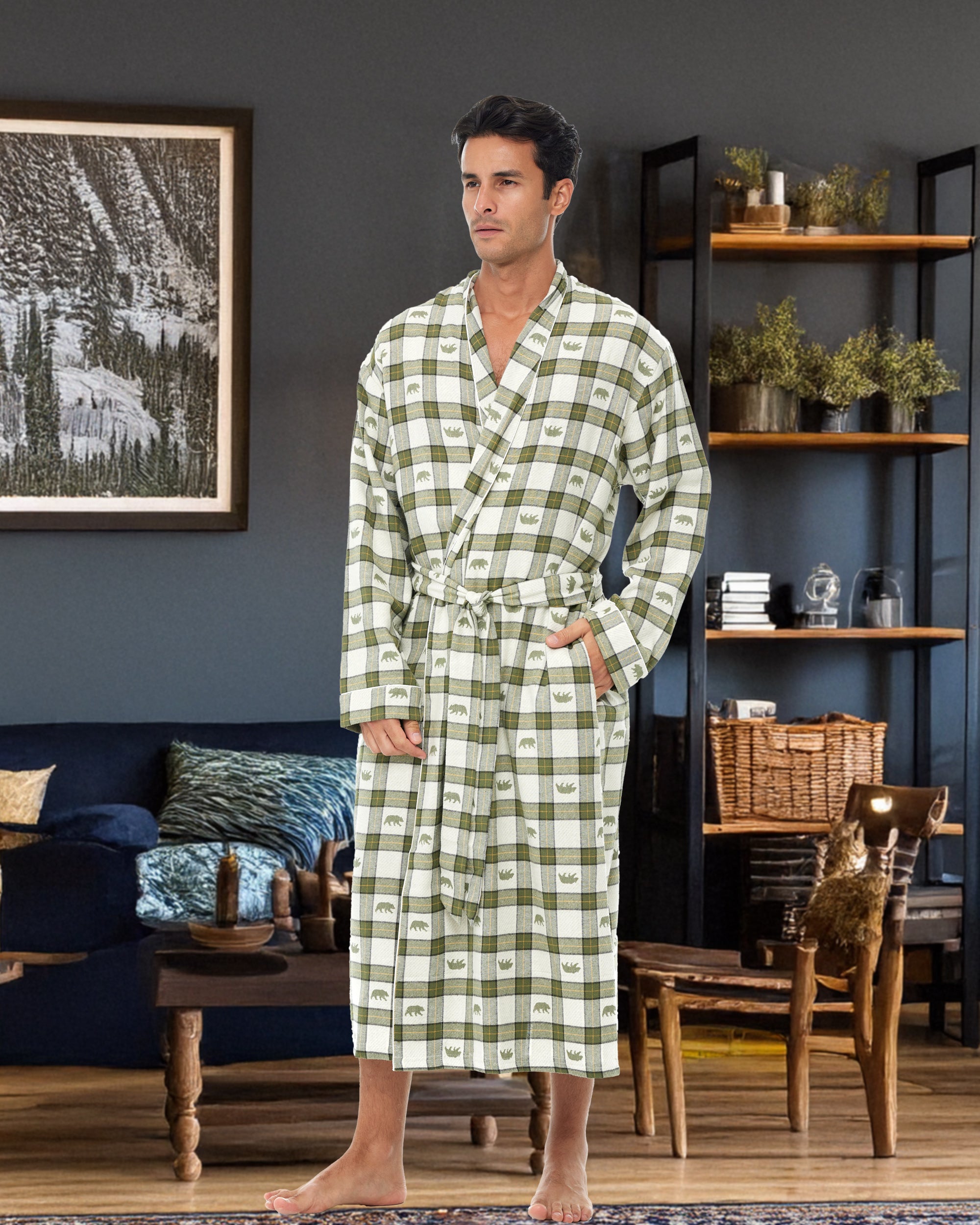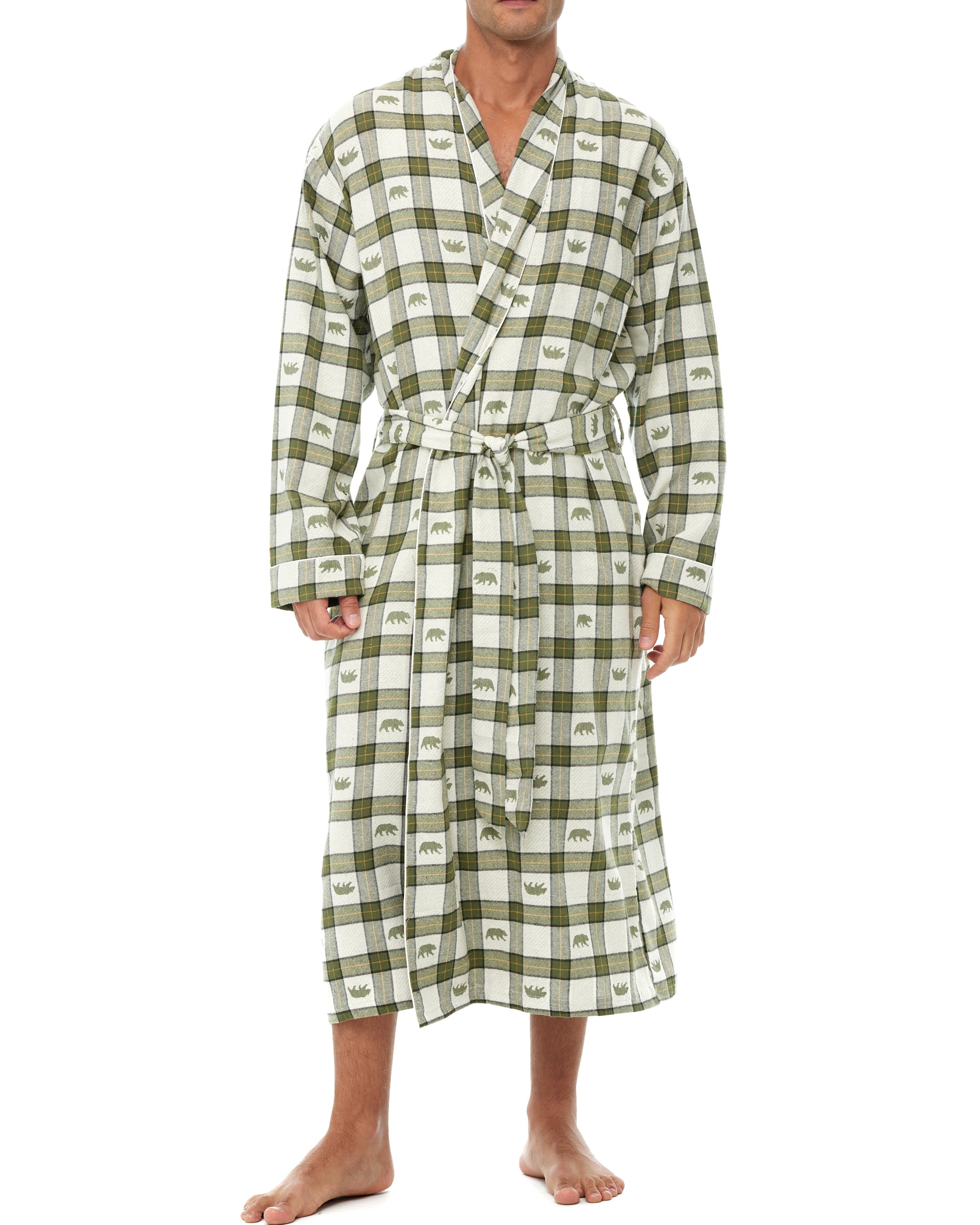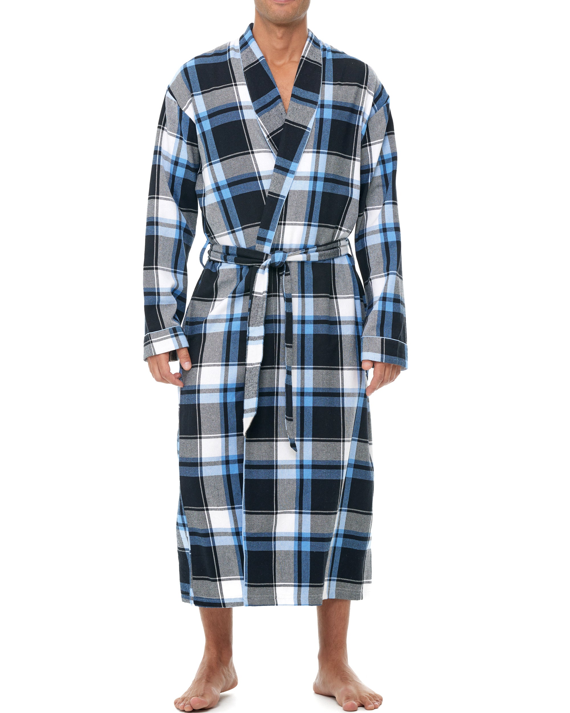 Men's Classic Cotton Flannel Robe with Pockets, Winter Bathrobe