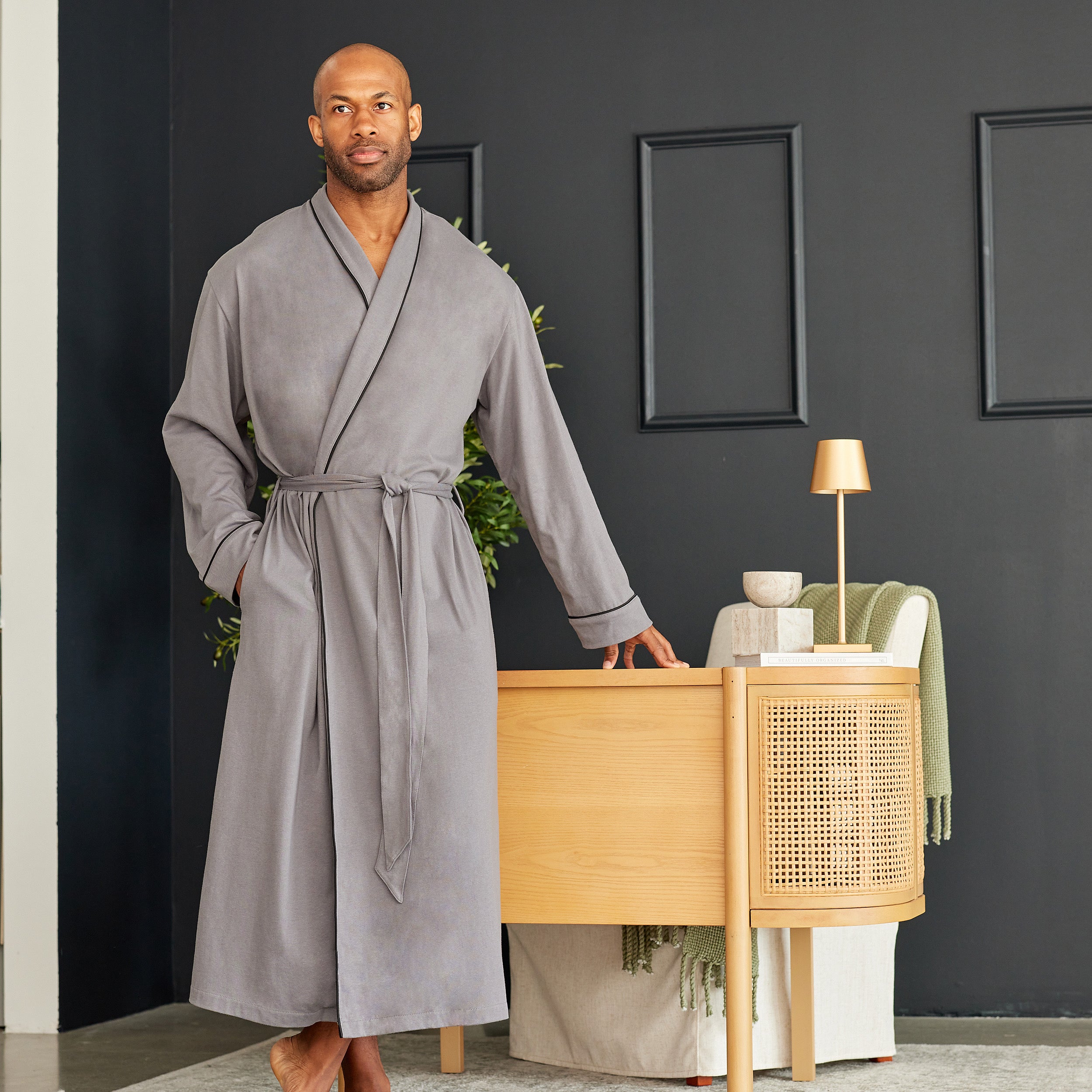 Mens Long Knit Lounge Robe with Pockets