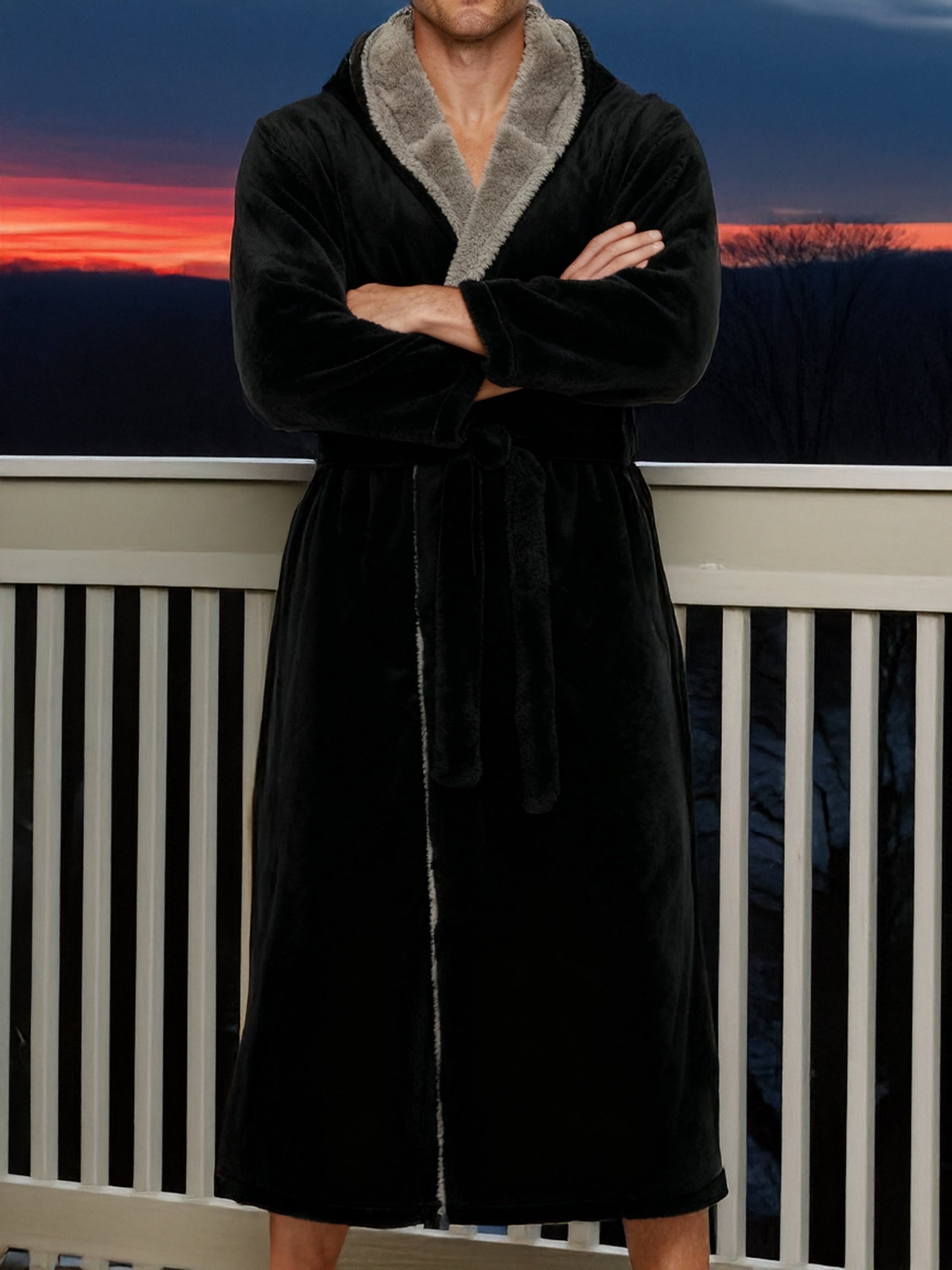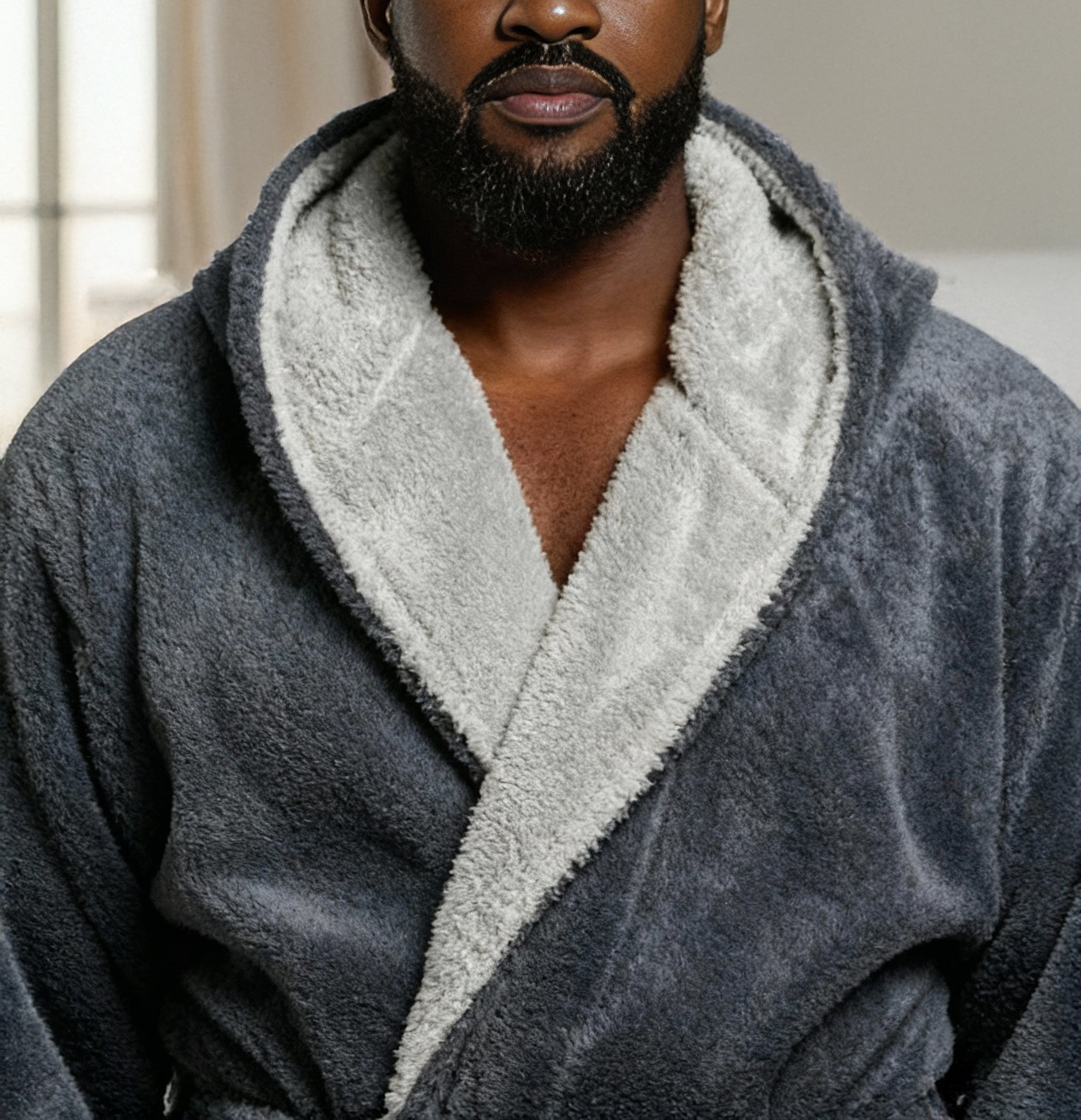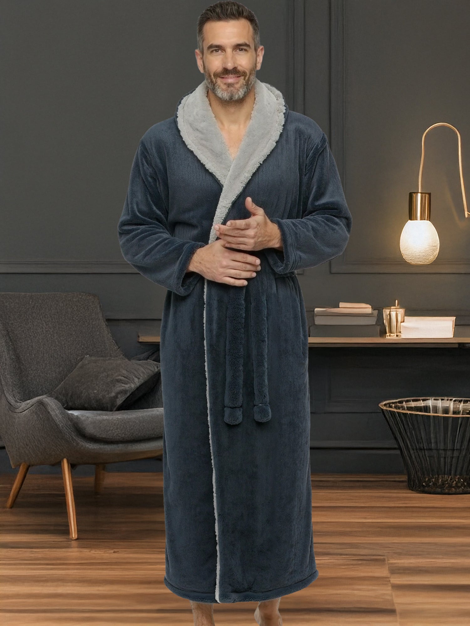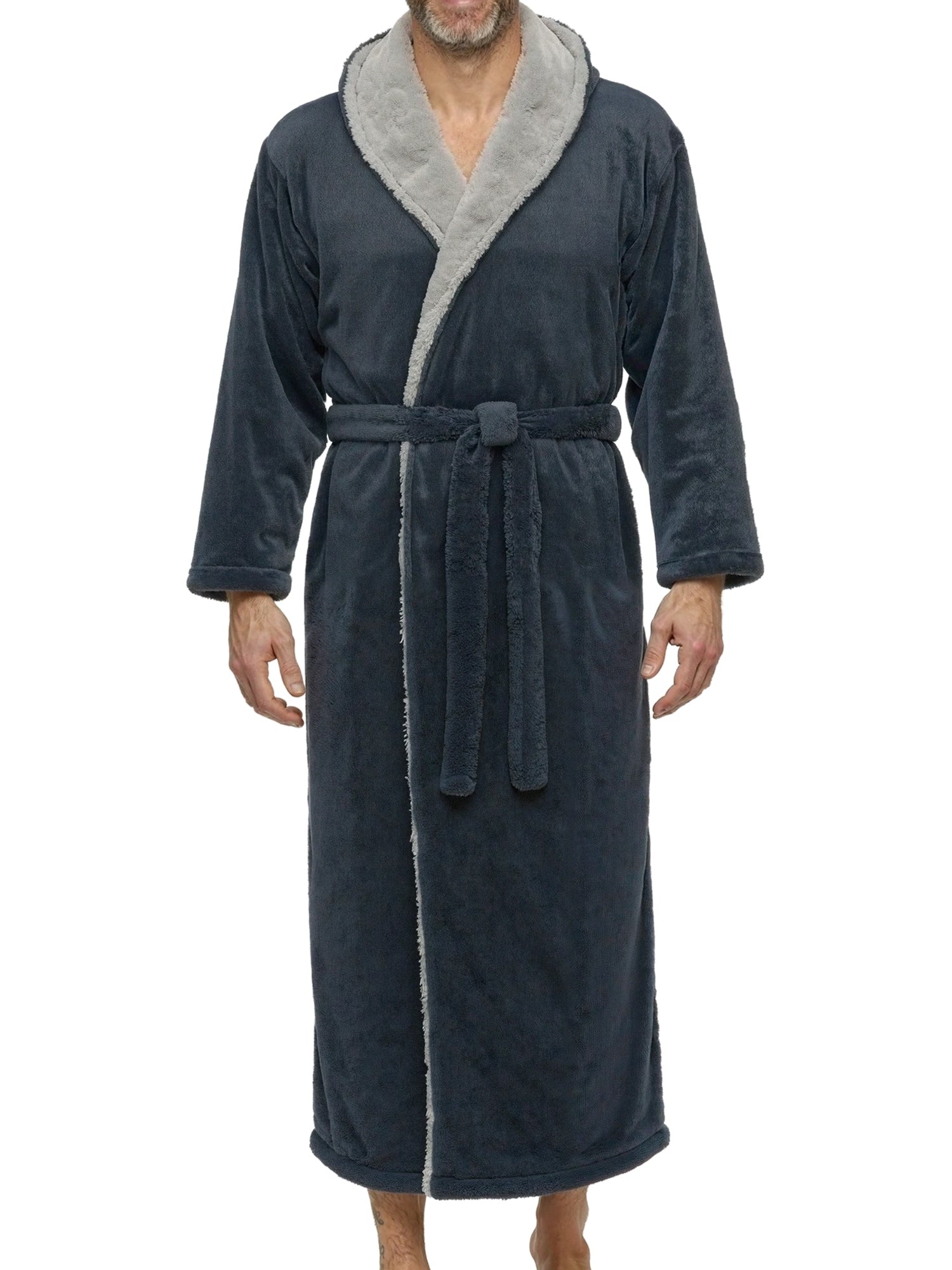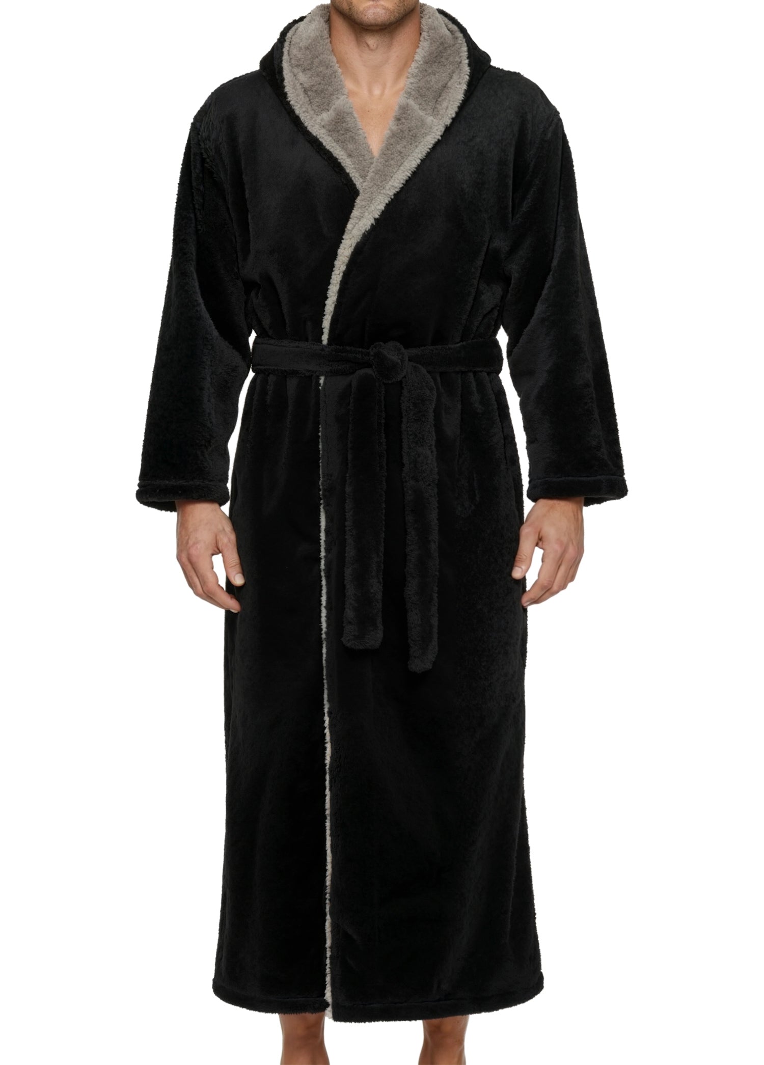 Wrap yourself in pure comfort with this men’s sherpa fleece bathrobe — your new go-to favorite for chilly winter mornings and lazy nights. Crafted from premium fleece fabric, this fluffy robe is softer and thicker than standard fleece, offering that same cozy feeling as petting your favorite furry companion. Designed to keep the cold air out, it’s warm, durable, and resistant to pilling or shedding. Stay cozy from head to toe with its full-length, hooded design. The large double-layer hood keeps your head, neck, and ears snug while you lounge, read, or nap. The removable belt stays securely attached on one side so you’ll never misplace it, while an inner tie closure ensures a secure, personalized fit. No more silly patch pockets on the front of the robe that nobody really likes, now there's two roomy side pockets for convenience and usability: perfect for warming your hands or keeping essentials close. Whether you’re relaxing at home, working remotely, or stepping outside on a brisk morning, this long, sherpa-lined robe wraps you in lasting comfort. Customers rave about the bathrobe’s perfect length, high-quality stitching, and the fluffy, warm texture that’s never bulky. It’s a thoughtful winter gift for dads, husbands, or friends — a hooded robe so soft and cozy, it feels like a hug on a cold day.