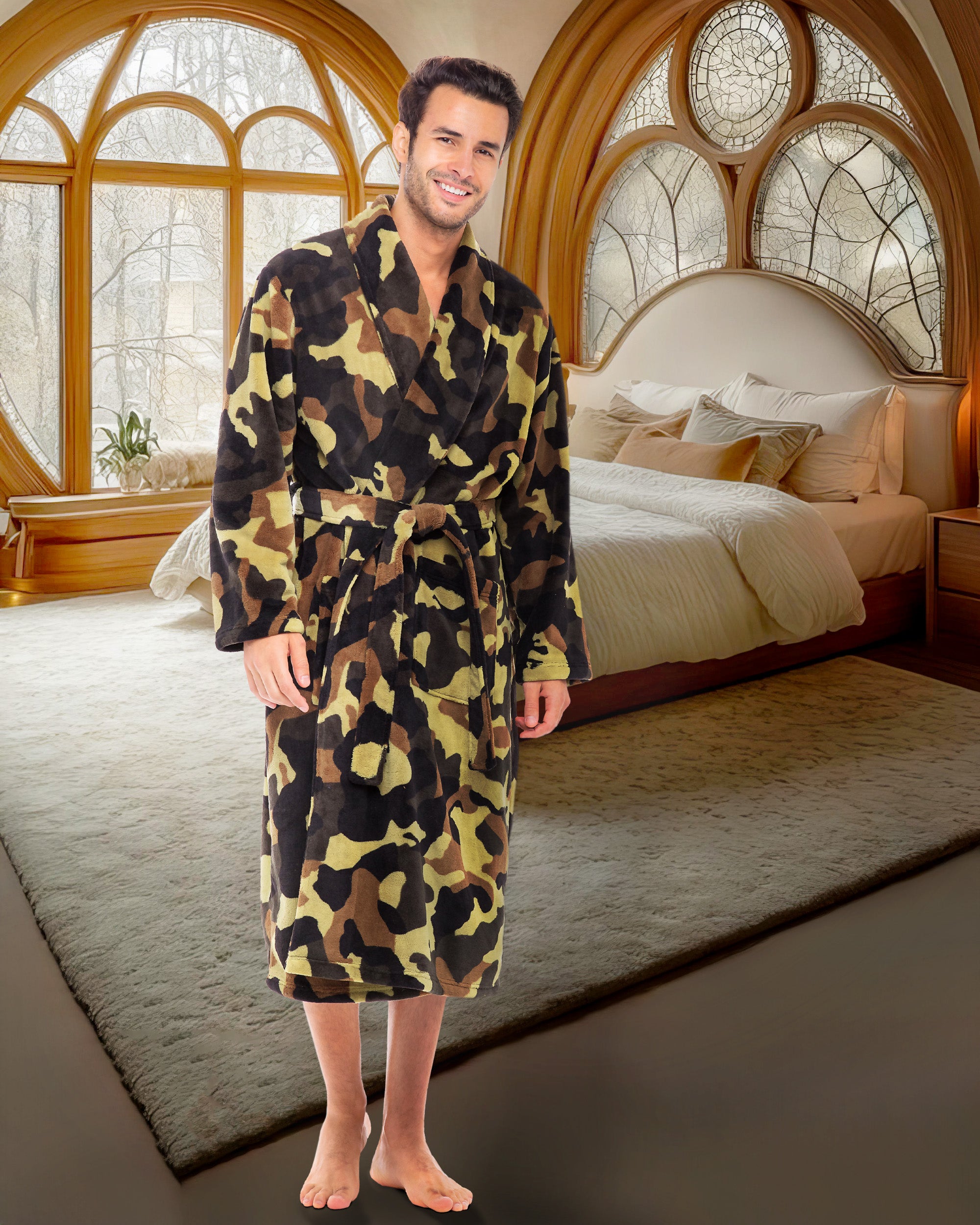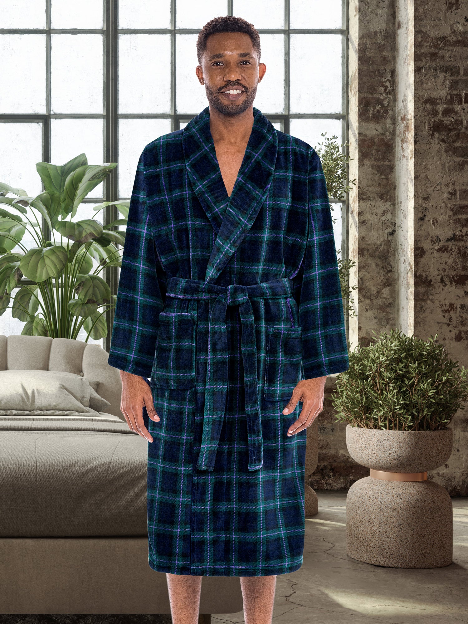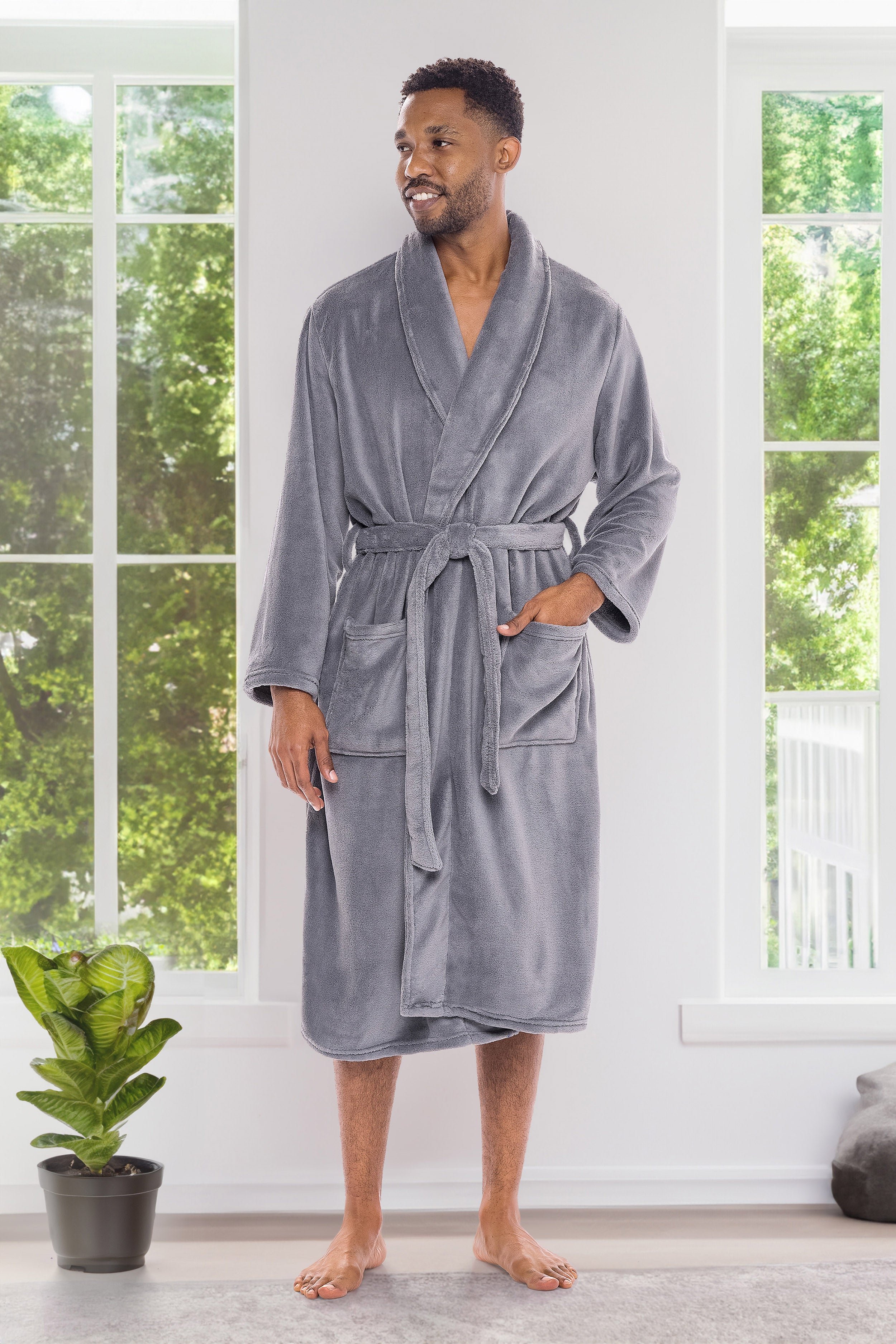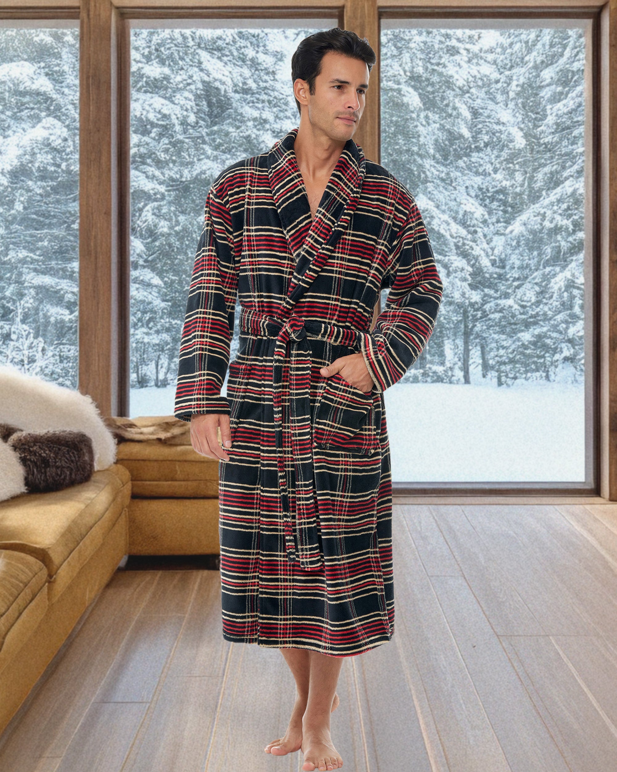 Men's Classic Winter Robe, Plush Fleece Bathrobe