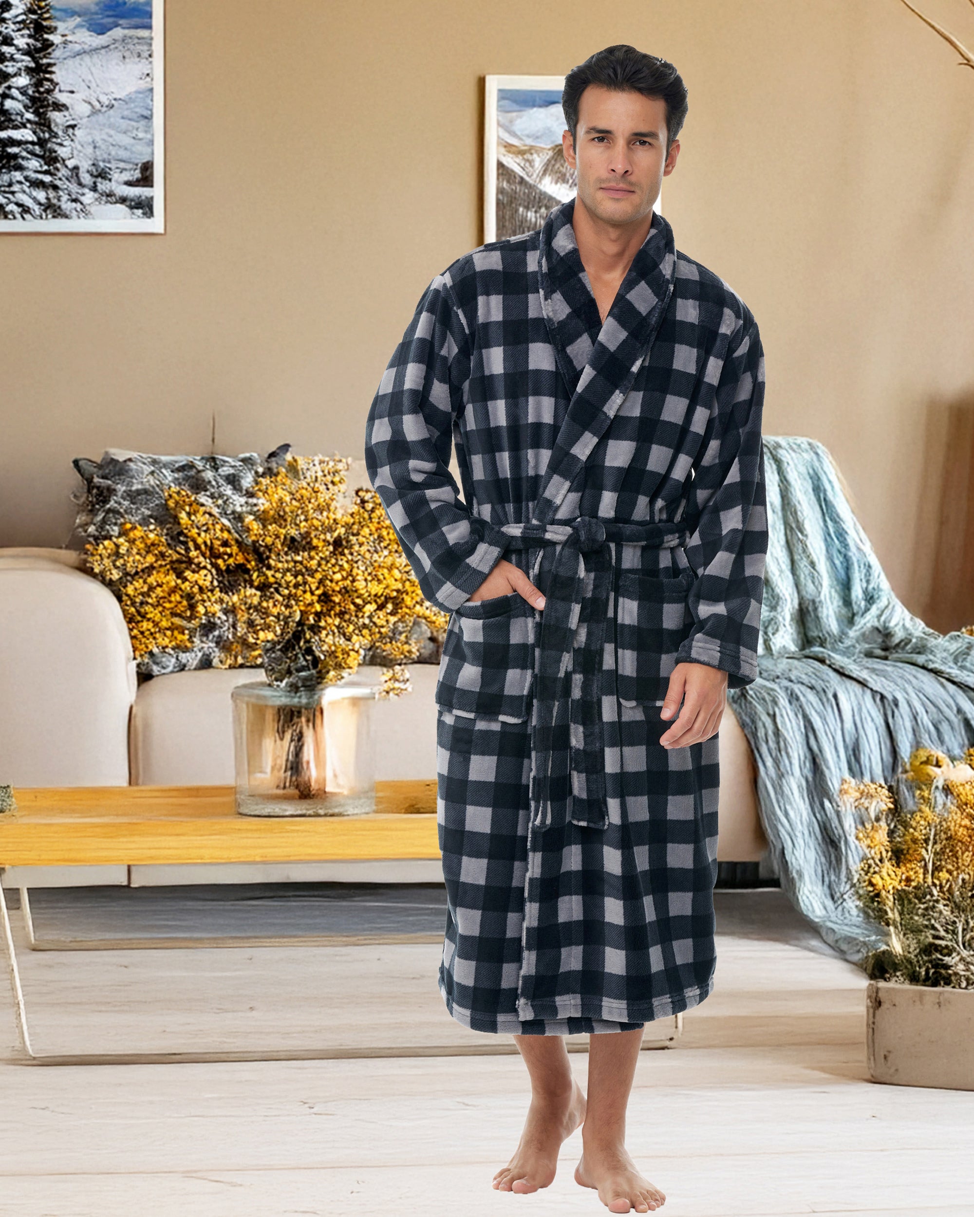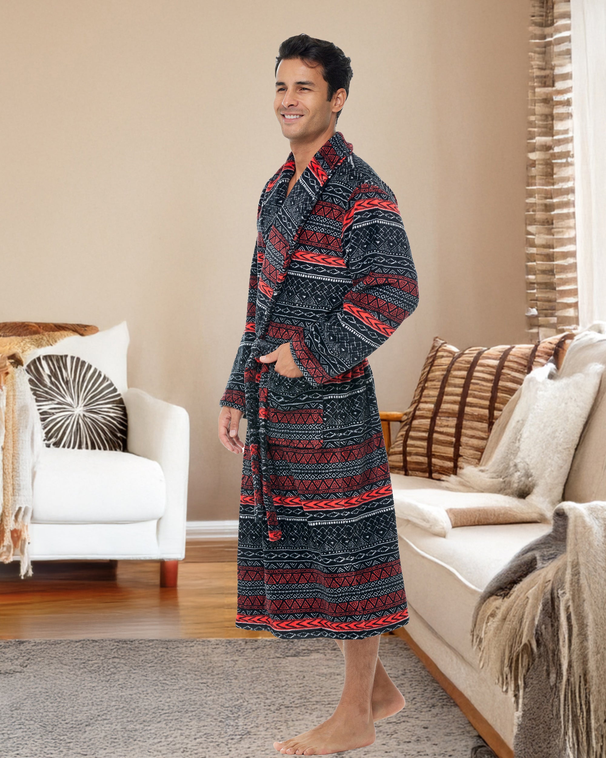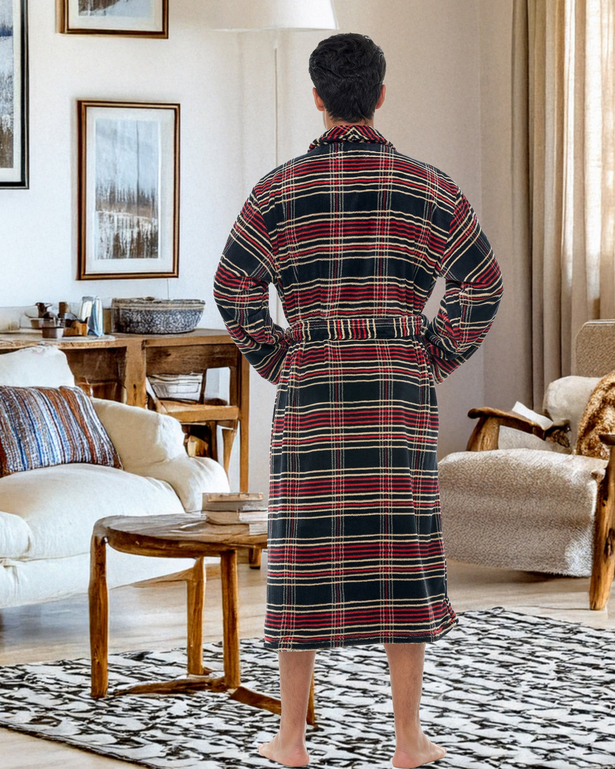 Embrace the luxury and style of the Alexander Del Rossa man robe for men, a men's robe that exudes the classic charm reminiscent of Hugh Hefner. This men's bathrobe, crafted from plush fleece, offers unparalleled comfort and warmth, making it an essential house coat for men for Fall and Winter. As a men's robes plush, it boasts spacious pockets and a cozy design, ideal for lounging in style. Whether as a gift or personal indulgence, these mens bathrobes are a testament to sophisticated relaxation, a hallmark of the men's bathrobe. Perfect for those who admire the elegance and comfort of a quality men robe, this men's bathrobe is a timeless addition to any wardrobe.
