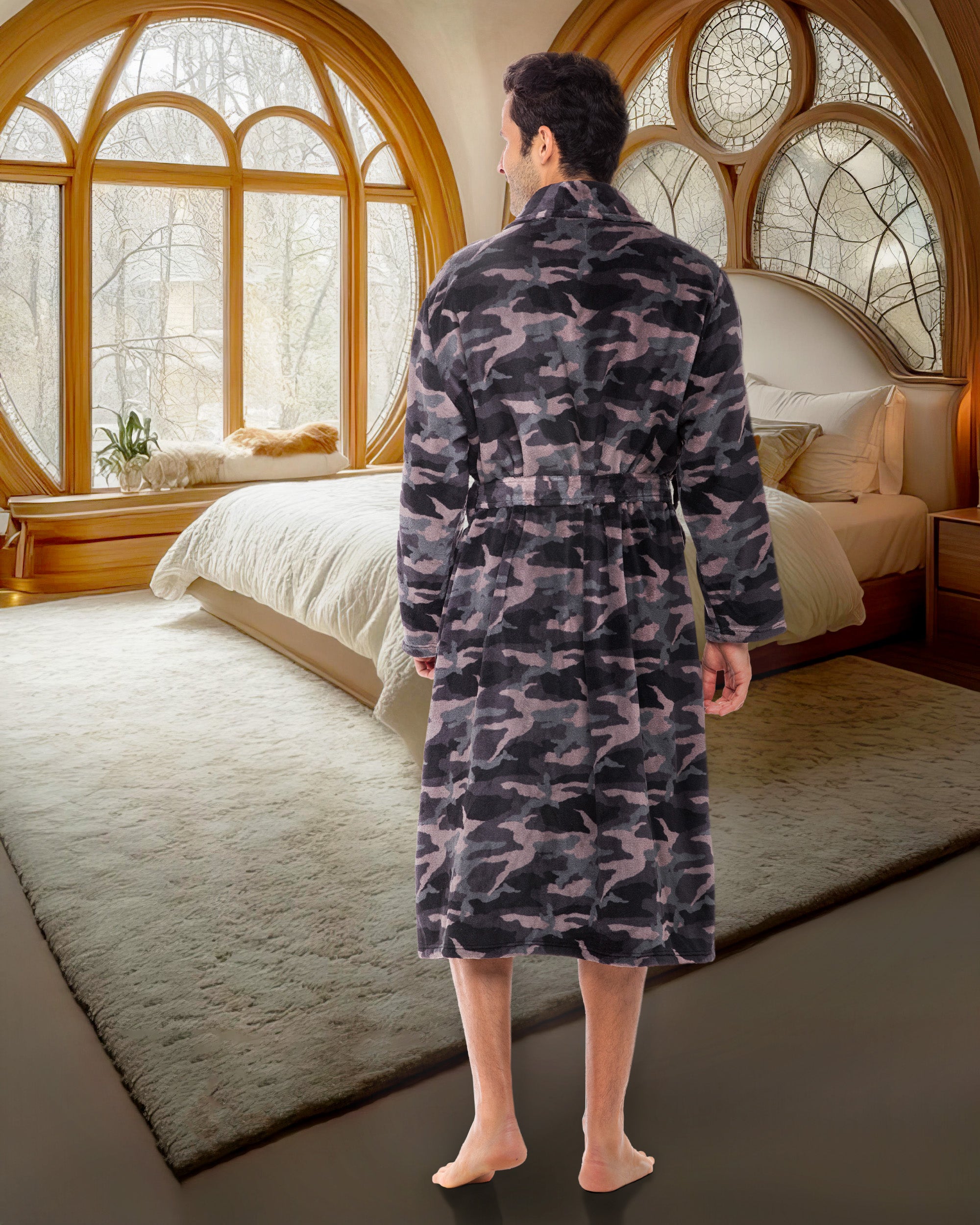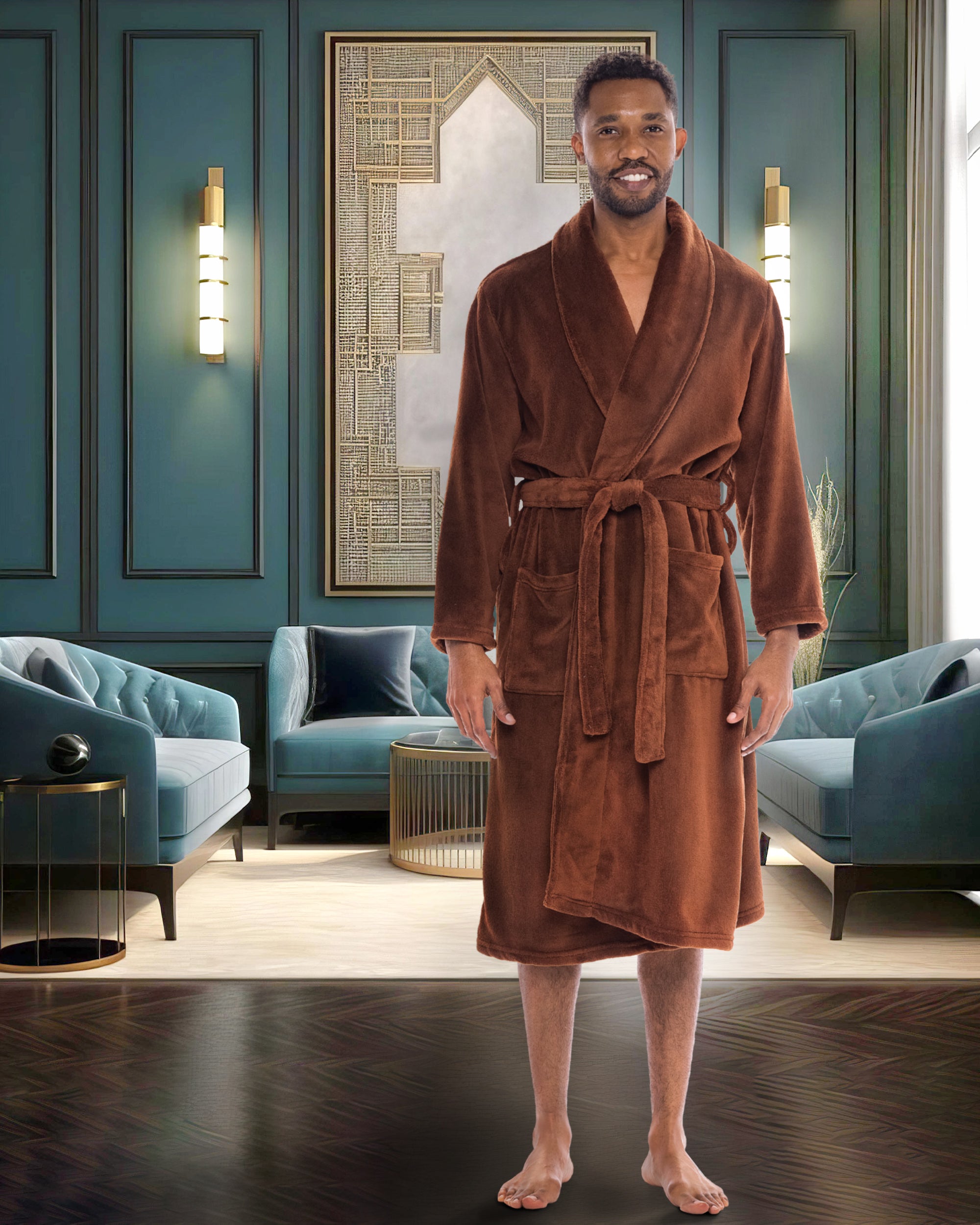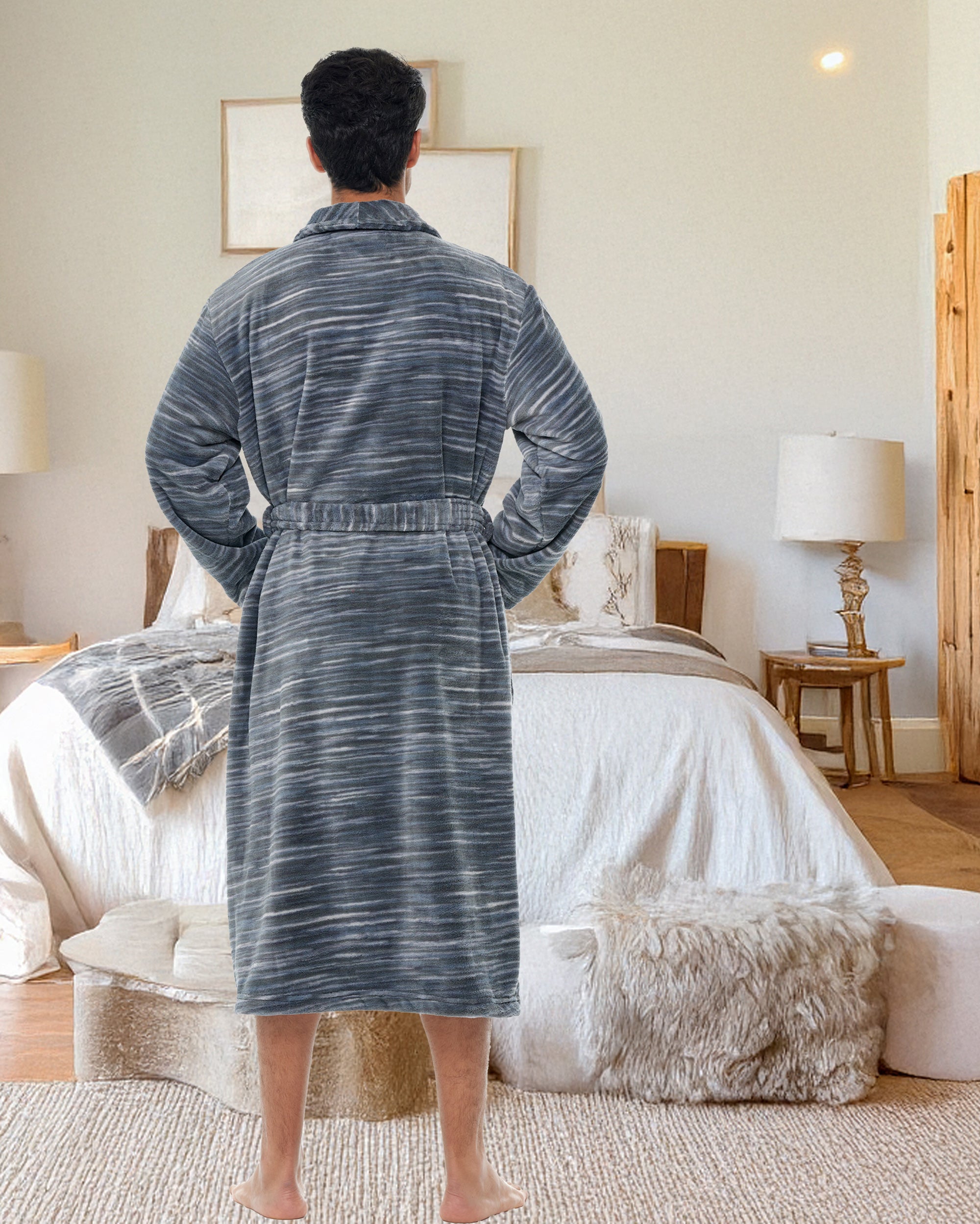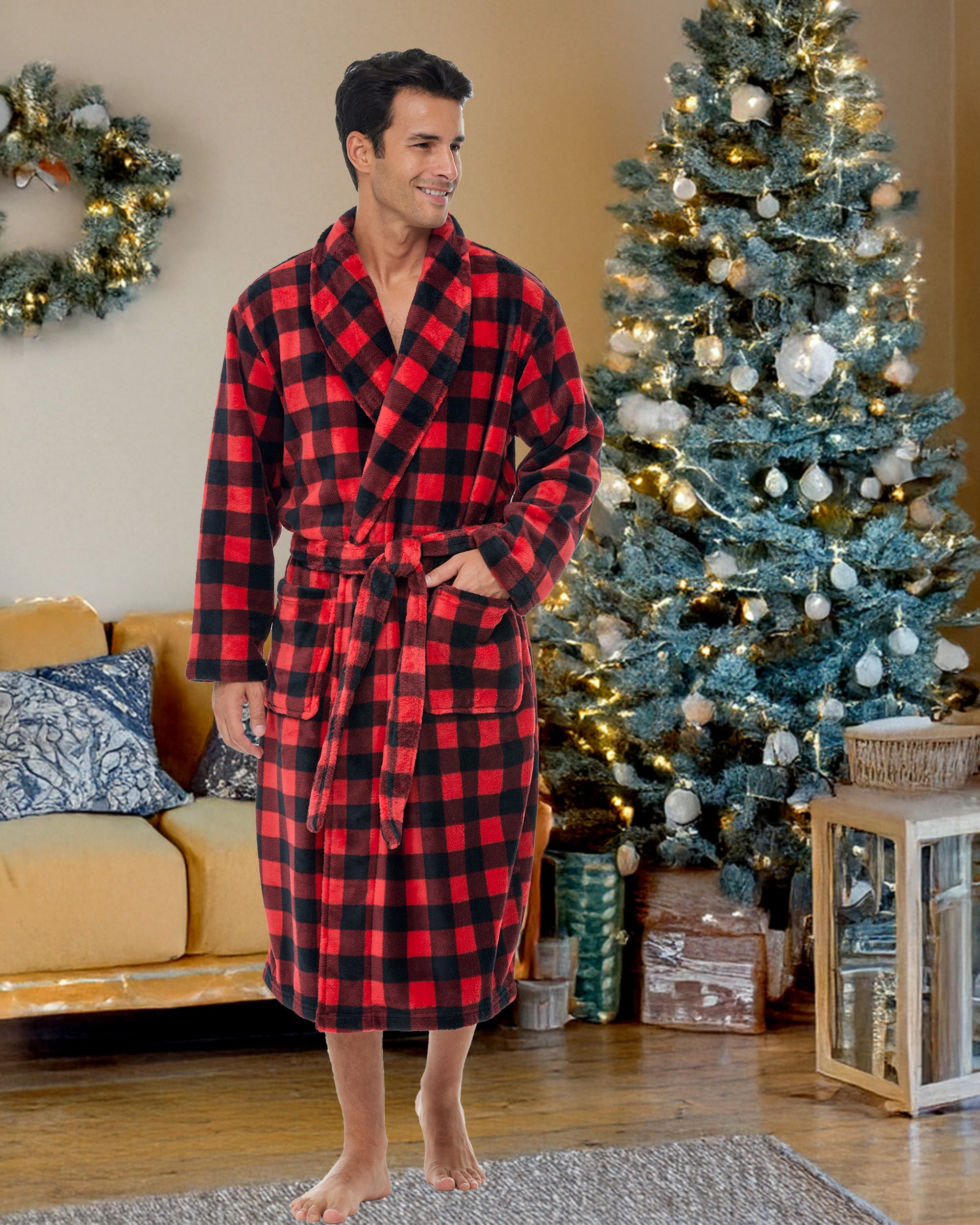 Embrace the luxury and style of the Alexander Del Rossa man robe for men, a men's robe that exudes the classic charm reminiscent of Hugh Hefner. This men's bathrobe, crafted from plush fleece, offers unparalleled comfort and warmth, making it an essential house coat for men for Fall and Winter. As a men's robes plush, it boasts spacious pockets and a cozy design, ideal for lounging in style. Whether as a gift or personal indulgence, these mens bathrobes are a testament to sophisticated relaxation, a hallmark of the men's bathrobe. Perfect for those who admire the elegance and comfort of a quality men robe, this men's bathrobe is a timeless addition to any wardrobe.