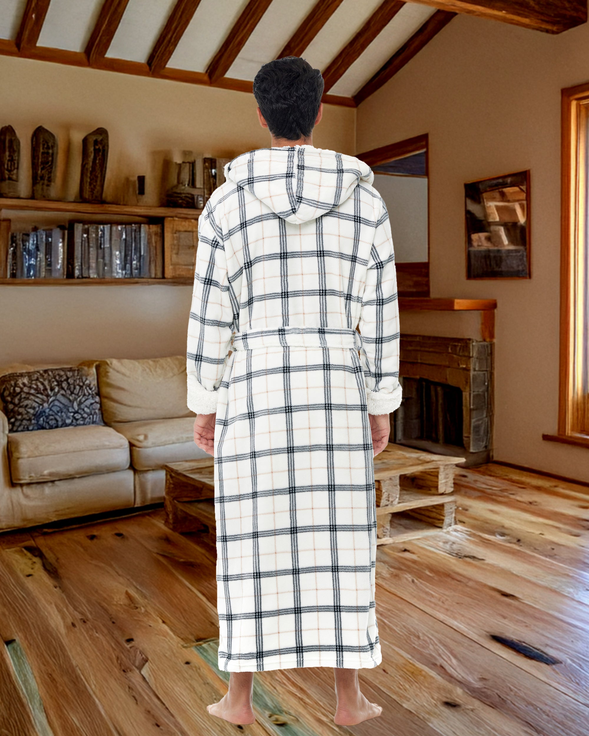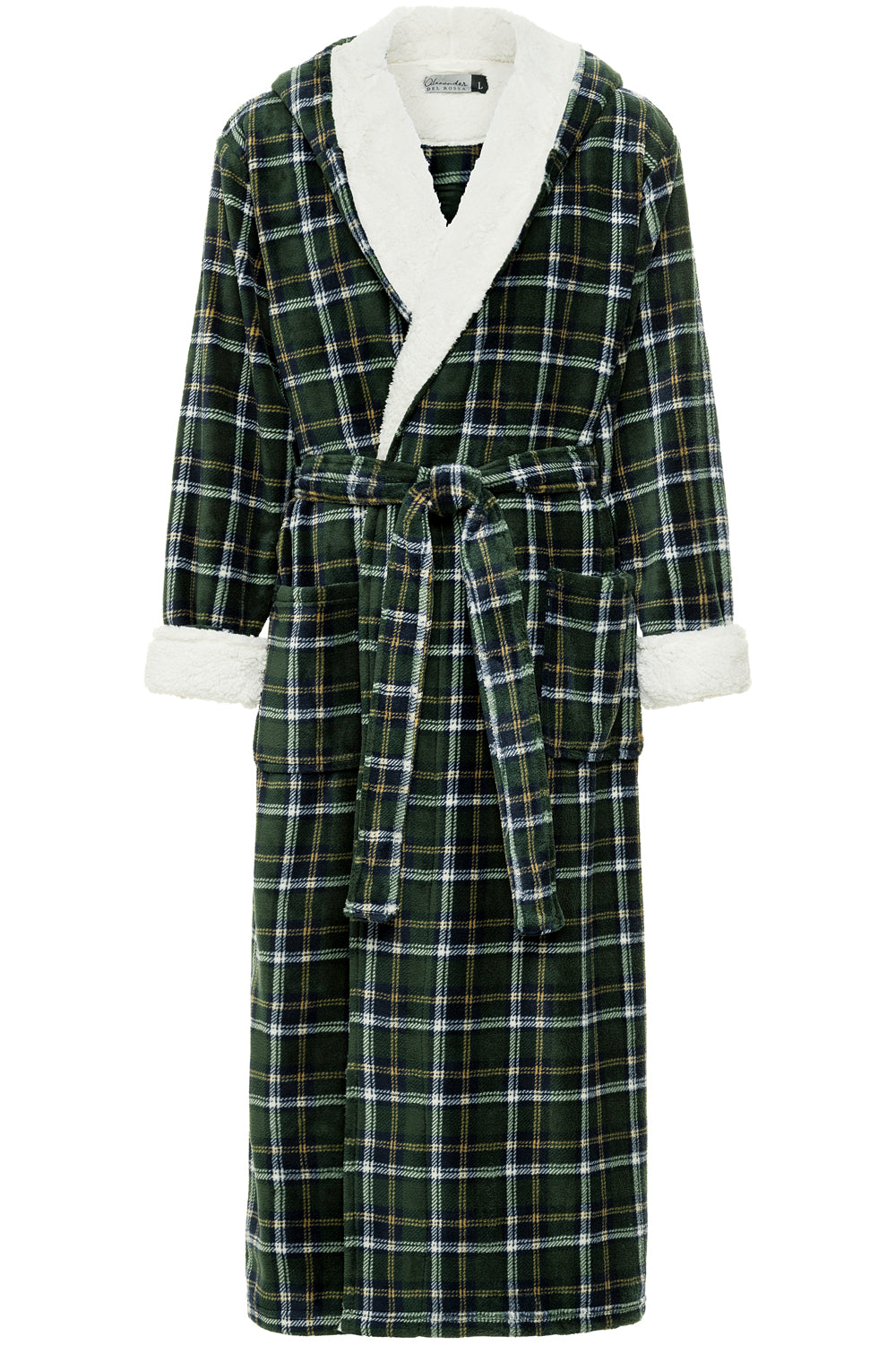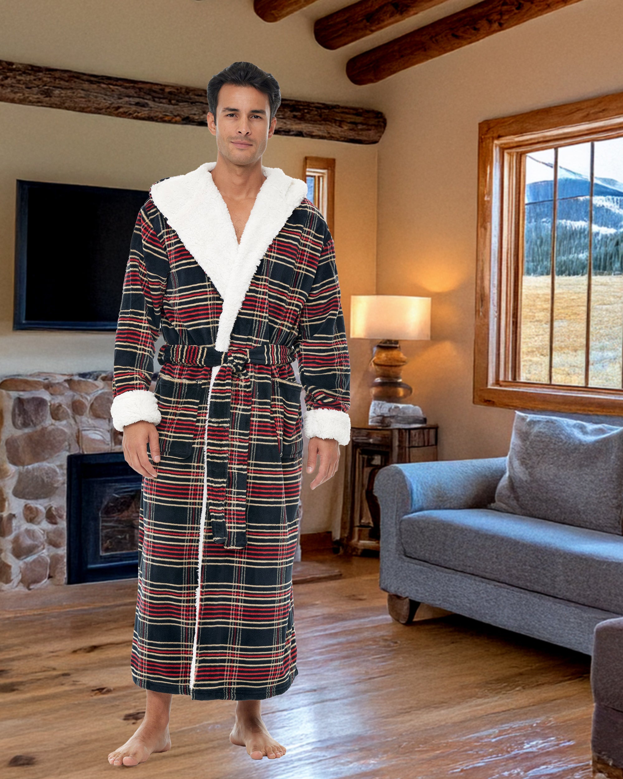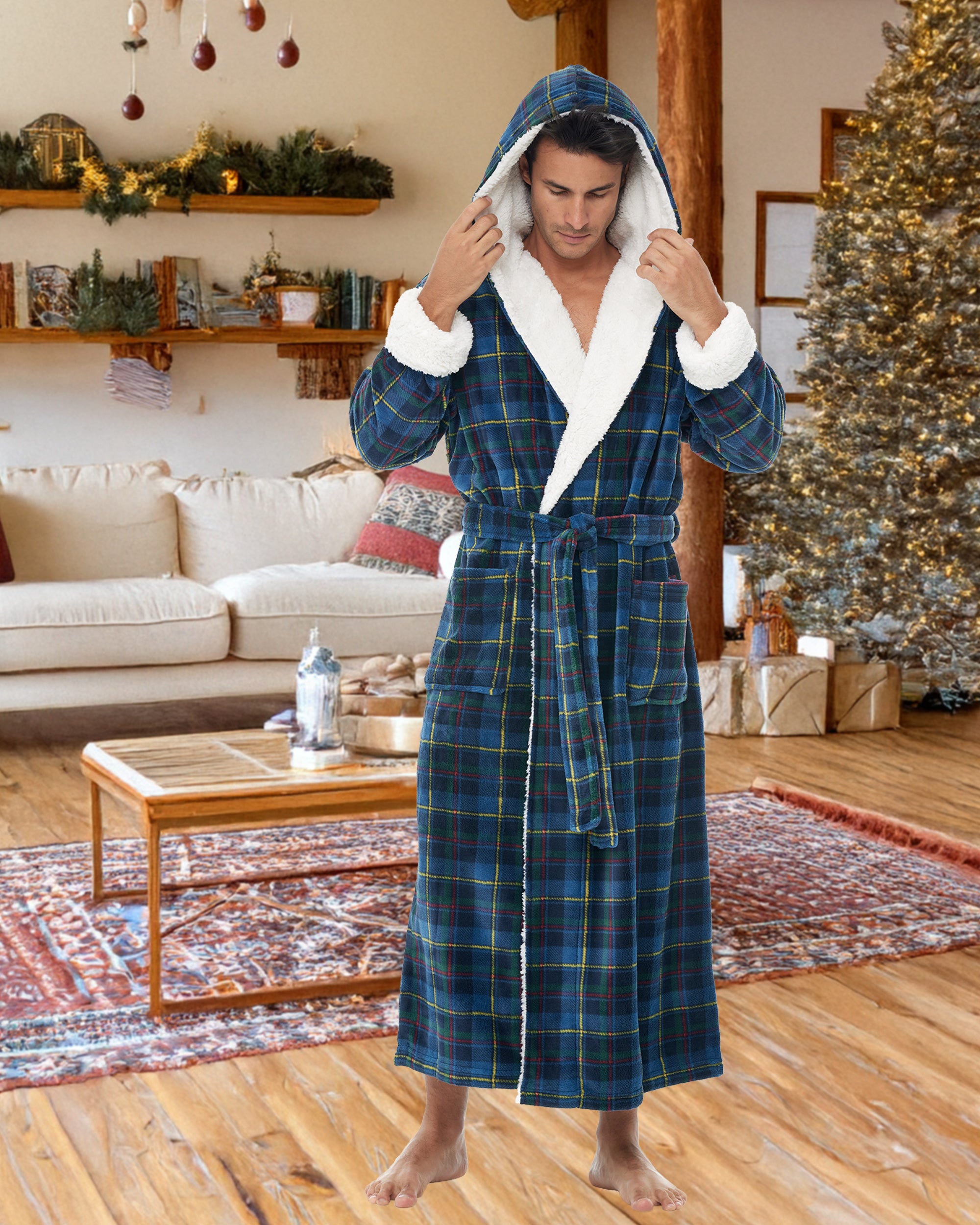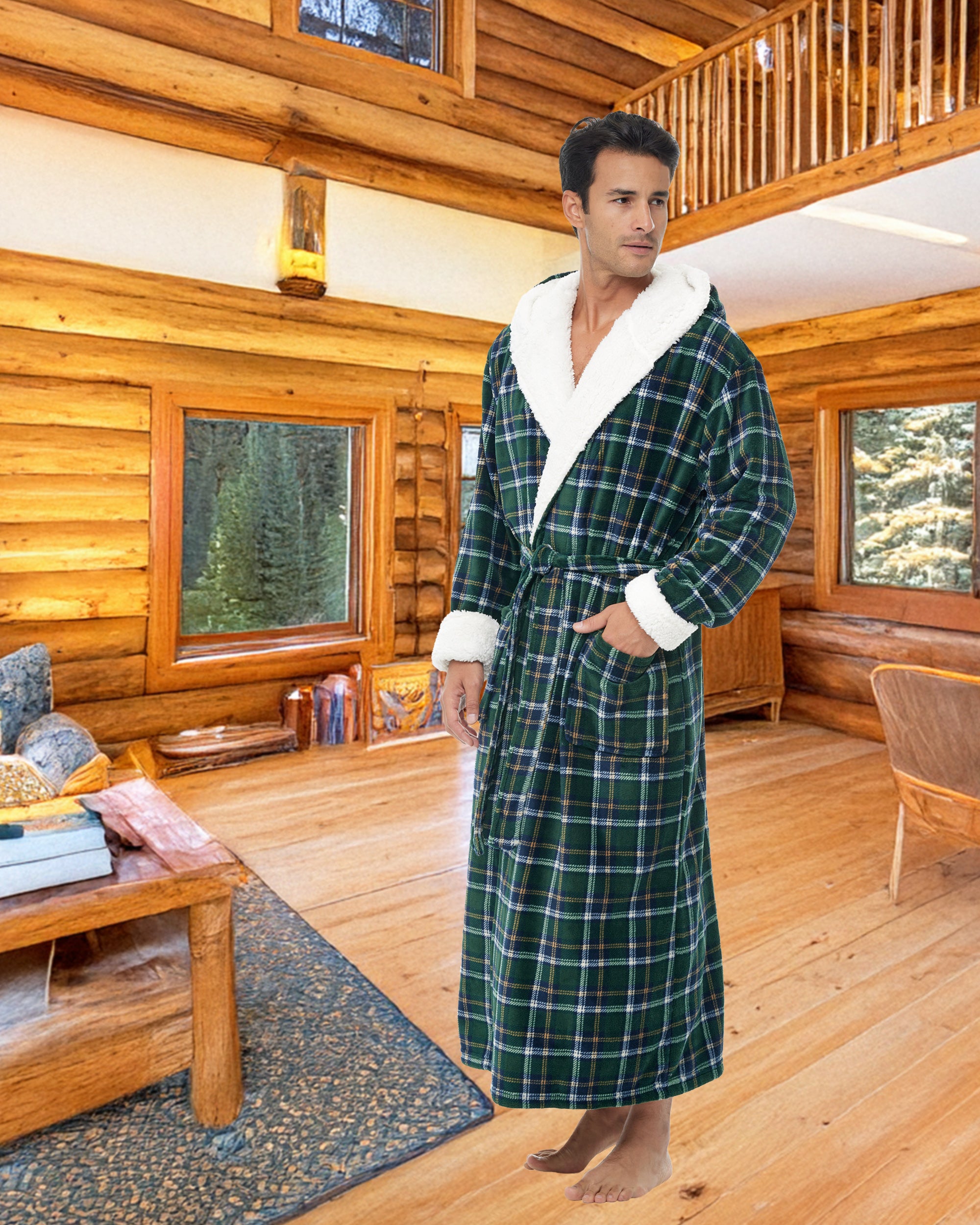 Men’s Long Hooded Sherpa Robe, Hooded Big and Tall Plush Fleece Hoodie Bathrobe