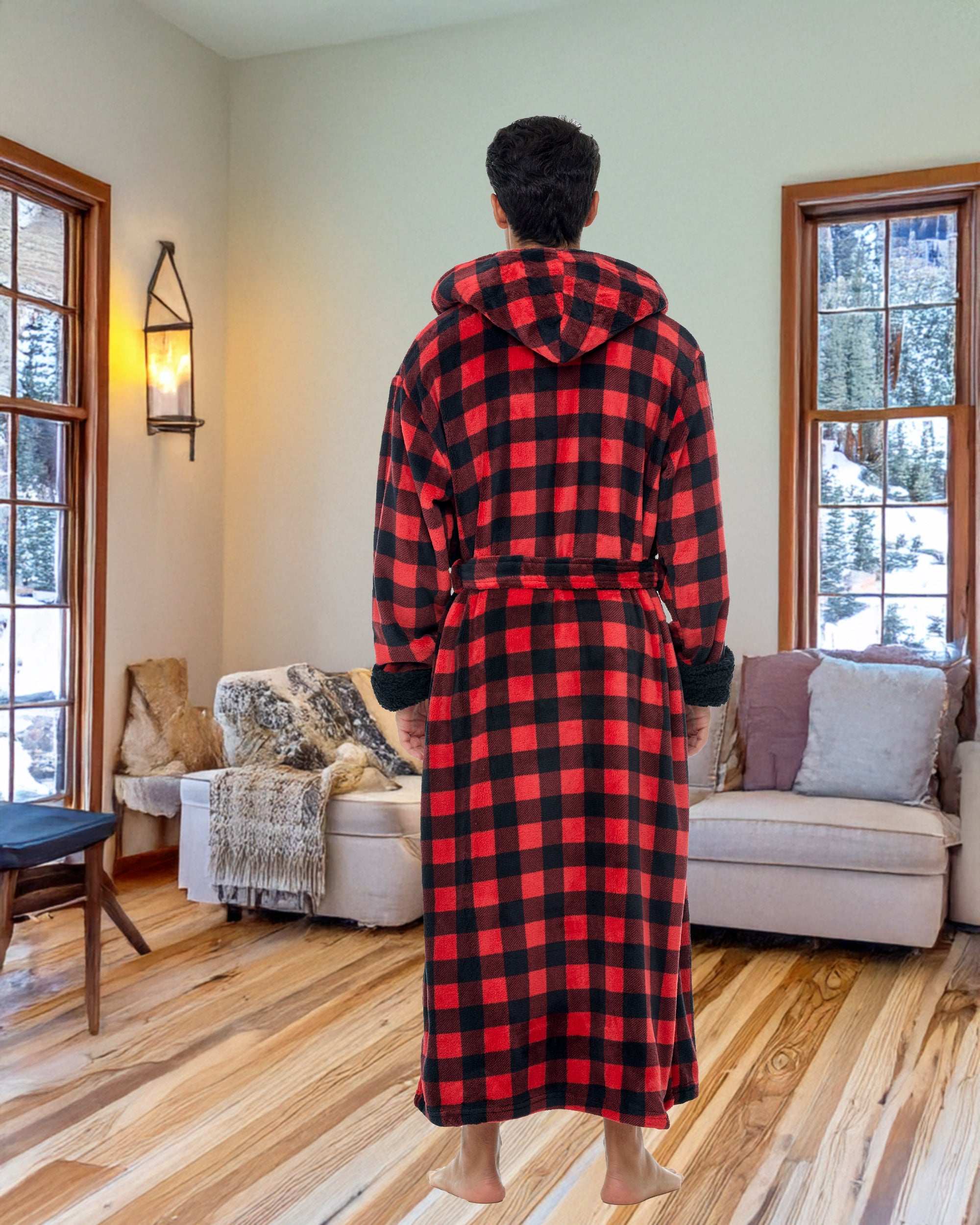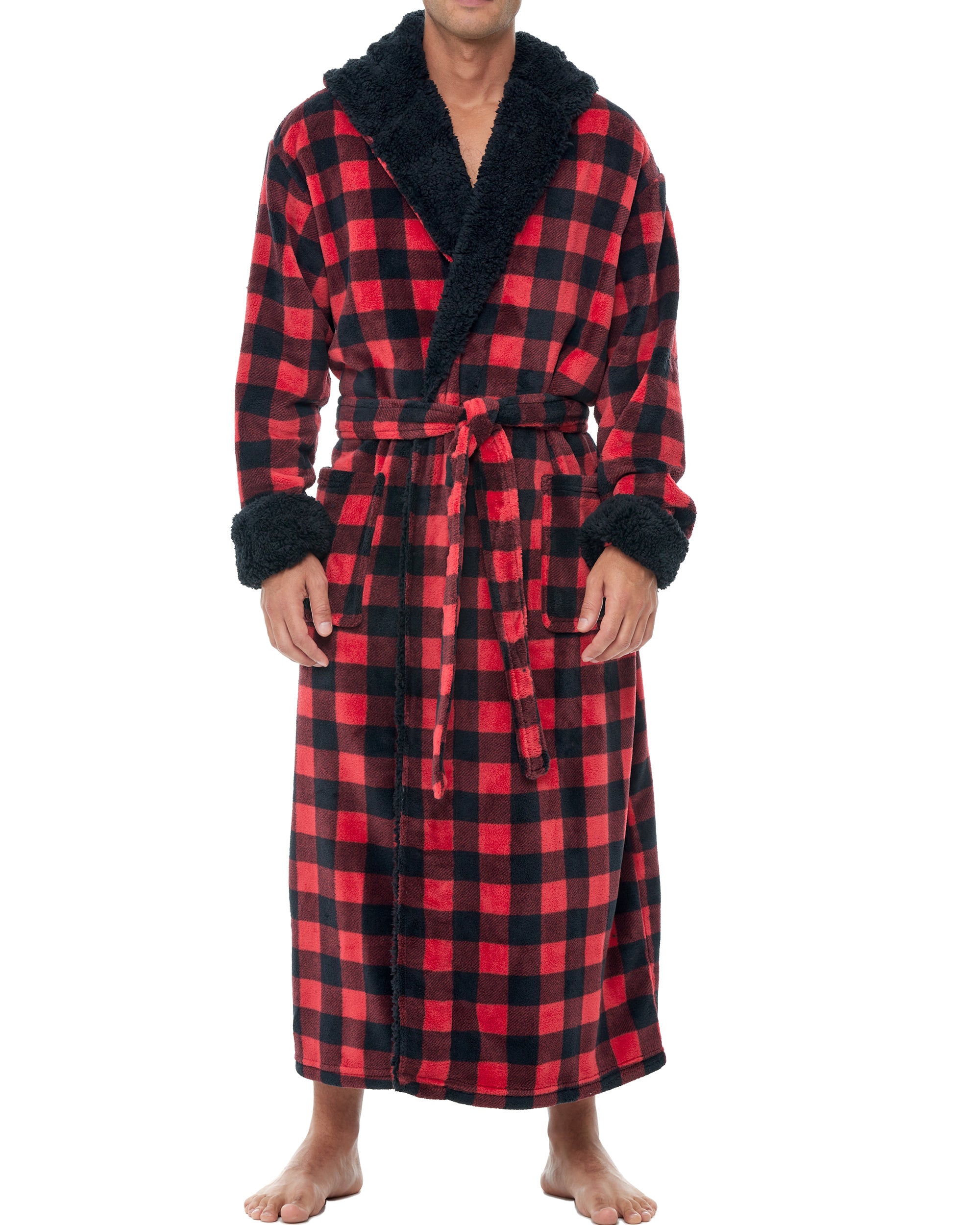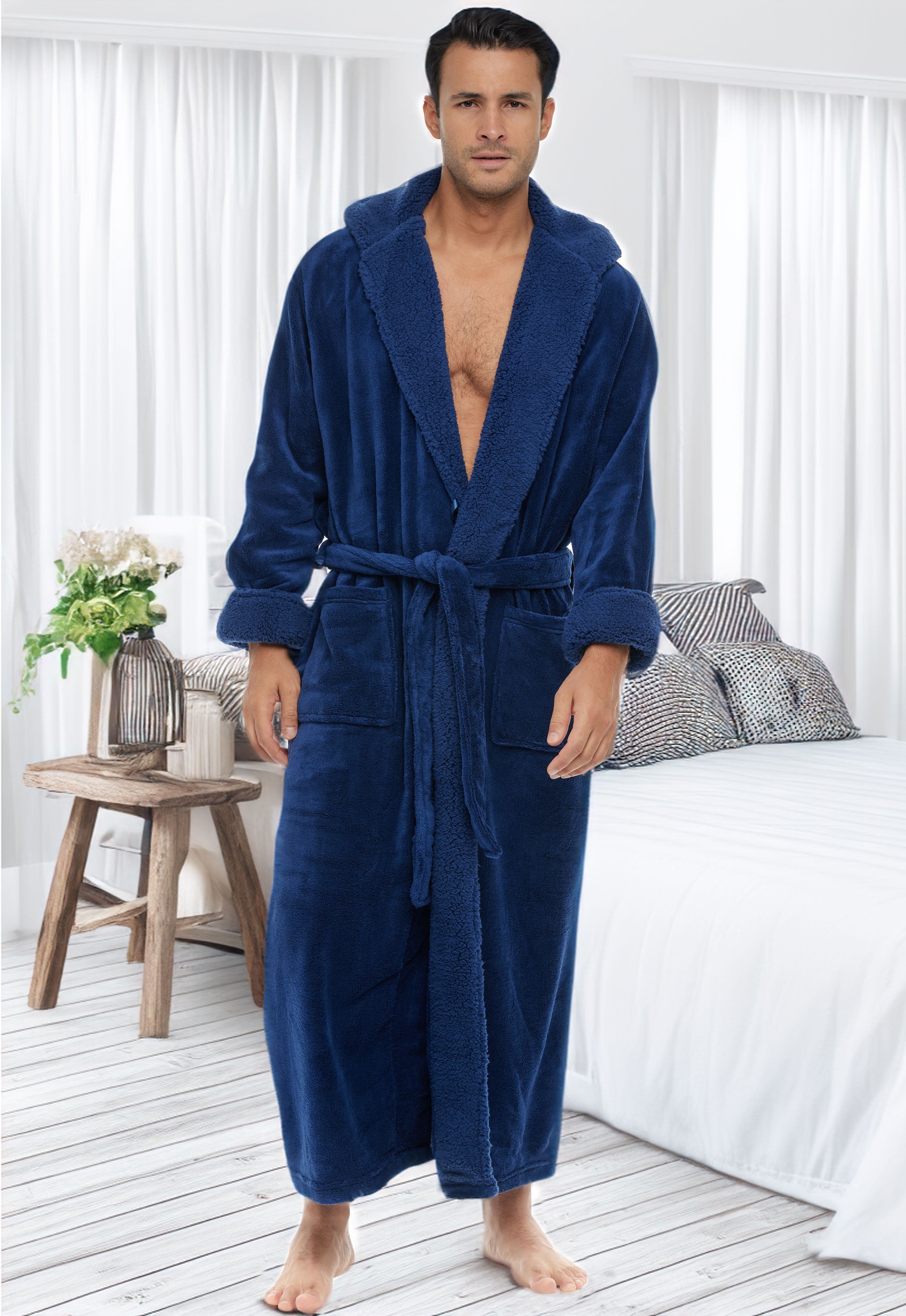 Discover the epitome of comfort with the Alexander Del Rossa Men's Hooded Sherpa Robe. This long, luxurious mens robe big and tall is more than just an item of clothing; it's a haven of coziness and warmth. Crafted from plush, high-quality fleece and featuring sherpa accents at the collar and sleeve cuffs, it offers unparalleled softness, making every moment spent in it a blissful experience. Designed with a man's comfort in mind, this mens fleece robe with hood features a generous length, perfect for those 5'6" and taller. Its full-length design ensures that you are wrapped in warmth from head to toe. The mens hooded bathrobes full length plush fleece fabric is not only cozy but also thick, making it ideal for those colder days and nights when you crave extra warmth. The sherpa lined hood is a standout feature of this men's robes big and tall, offering additional comfort and warmth. Whether you're enjoying a lazy morning or winding down after a long day, the hood adds an extra layer of coziness. This big and tall men robe is like wearing your favorite hoodie, but better. Big pockets are strategically placed for convenience, making this men's house coat robe not just about comfort but also about practicality. These pockets are perfect for keeping your essentials, like a smartphone or reading glasses, close at hand. This mens robes warm is a perfect blend of style and functionality, making it an excellent gift for any man who appreciates the finer things in life. It's more than just a robe; it's a statement of elegance and comfort. Whether you're buying it for yourself or as a gift, this plush fleece bathrobe is sure to impress. In summary, the Alexander Del Rossa mens plush robe with hood is the ultimate choice for anyone seeking a blend of luxury, comfort, and practicality. It's not just a robe; it's an experience, a cozy embrace that you'll look forward to every day.