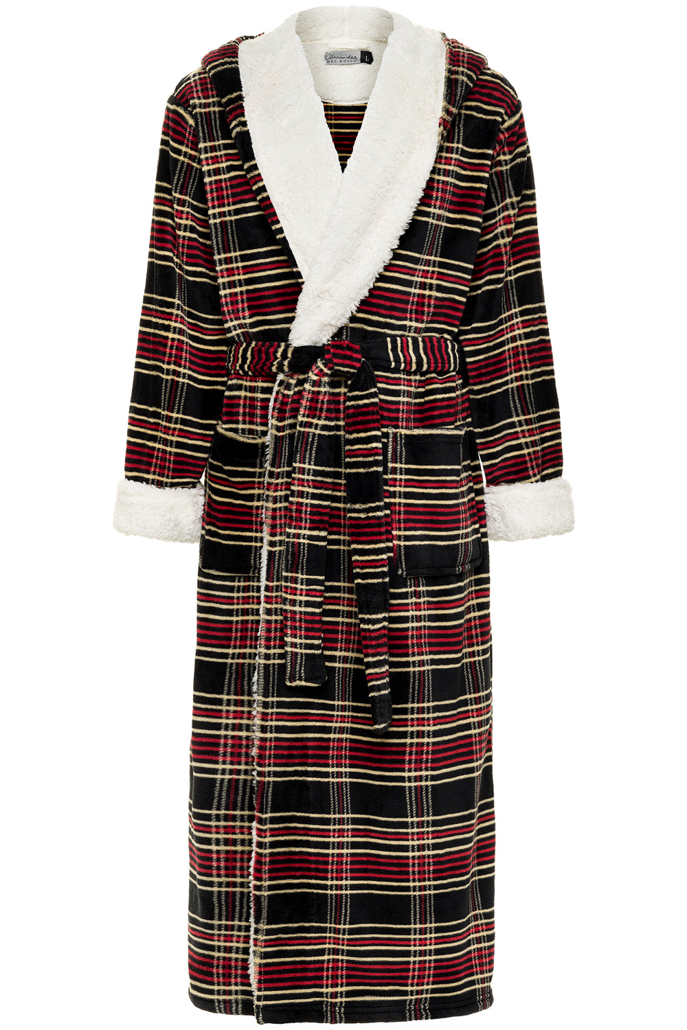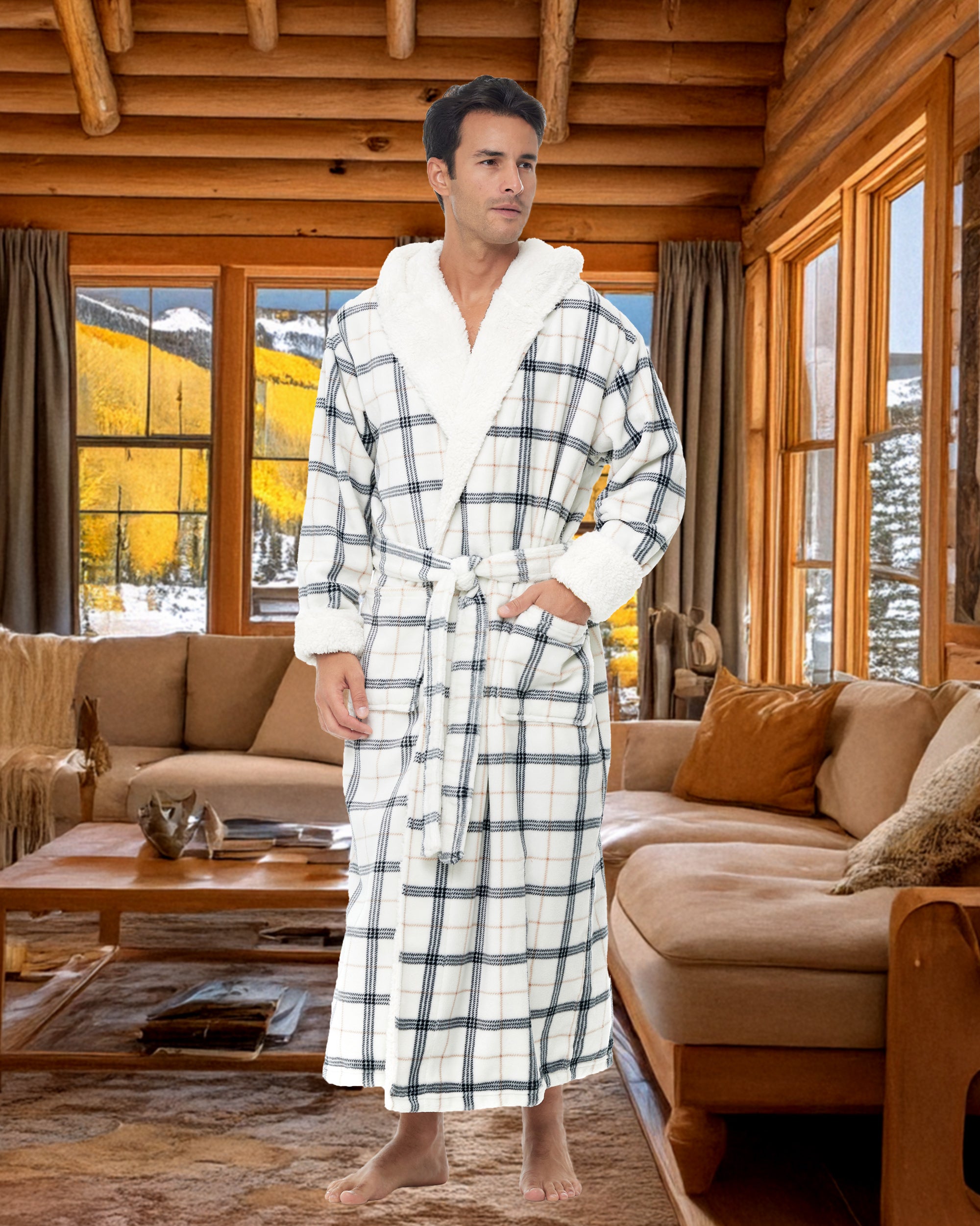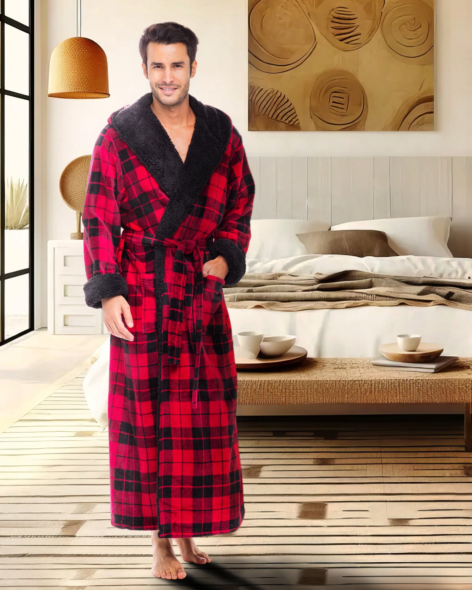Discover the epitome of comfort with the Alexander Del Rossa Men's Hooded Sherpa Robe. This long, luxurious mens robe big and tall is more than just an item of clothing; it's a haven of coziness and warmth. Crafted from plush, high-quality fleece and featuring sherpa accents at the collar and sleeve cuffs, it offers unparalleled softness, making every moment spent in it a blissful experience. Designed with a man's comfort in mind, this mens fleece robe with hood features a generous length, perfect for those 5'6" and taller. Its full-length design ensures that you are wrapped in warmth from head to toe. The mens hooded bathrobes full length plush fleece fabric is not only cozy but also thick, making it ideal for those colder days and nights when you crave extra warmth. The sherpa lined hood is a standout feature of this men's robes big and tall, offering additional comfort and warmth. Whether you're enjoying a lazy morning or winding down after a long day, the hood adds an extra layer of coziness. This big and tall men robe is like wearing your favorite hoodie, but better. Big pockets are strategically placed for convenience, making this men's house coat robe not just about comfort but also about practicality. These pockets are perfect for keeping your essentials, like a smartphone or reading glasses, close at hand. This mens robes warm is a perfect blend of style and functionality, making it an excellent gift for any man who appreciates the finer things in life. It's more than just a robe; it's a statement of elegance and comfort. Whether you're buying it for yourself or as a gift, this plush fleece bathrobe is sure to impress. In summary, the Alexander Del Rossa mens plush robe with hood is the ultimate choice for anyone seeking a blend of luxury, comfort, and practicality. It's not just a robe; it's an experience, a cozy embrace that you'll look forward to every day.