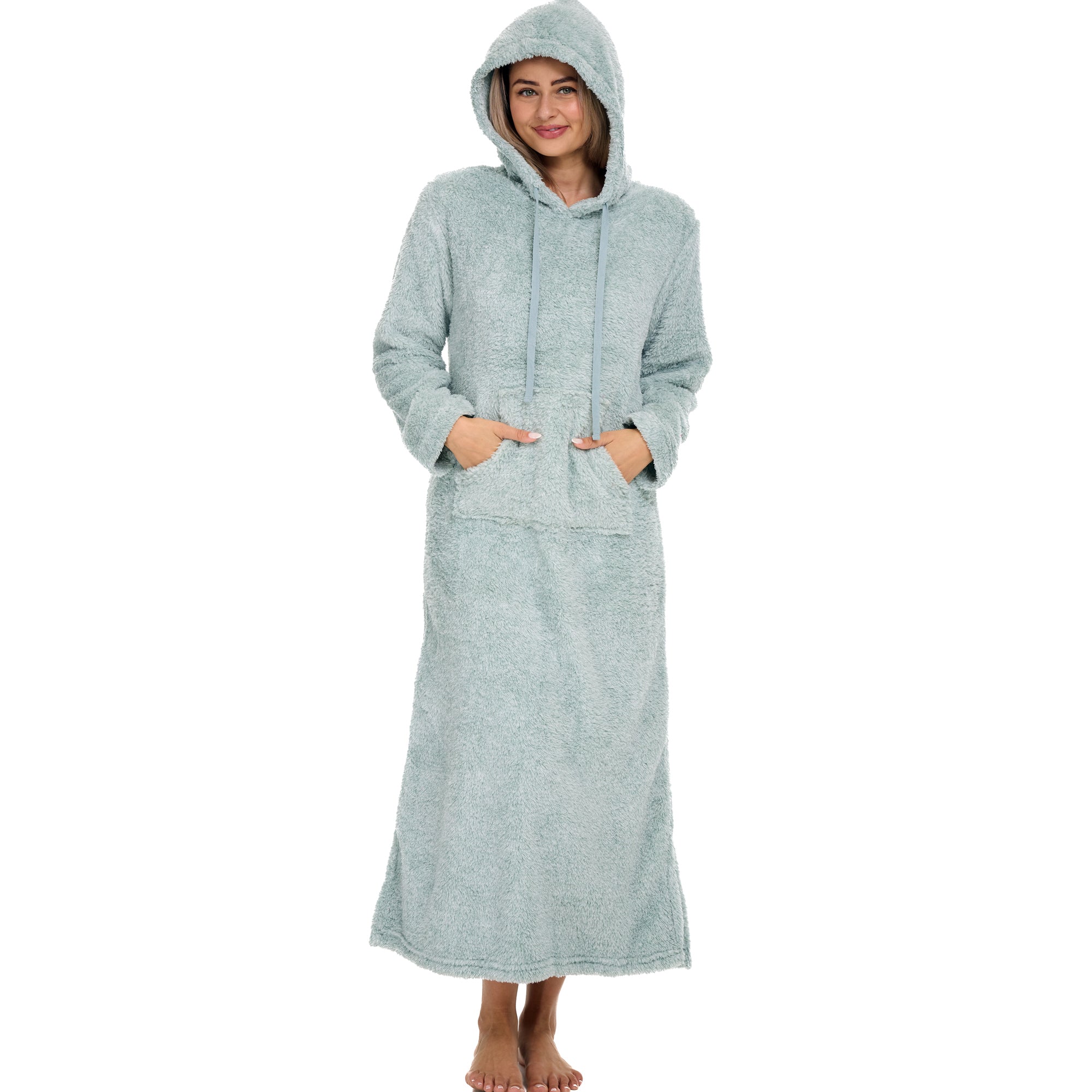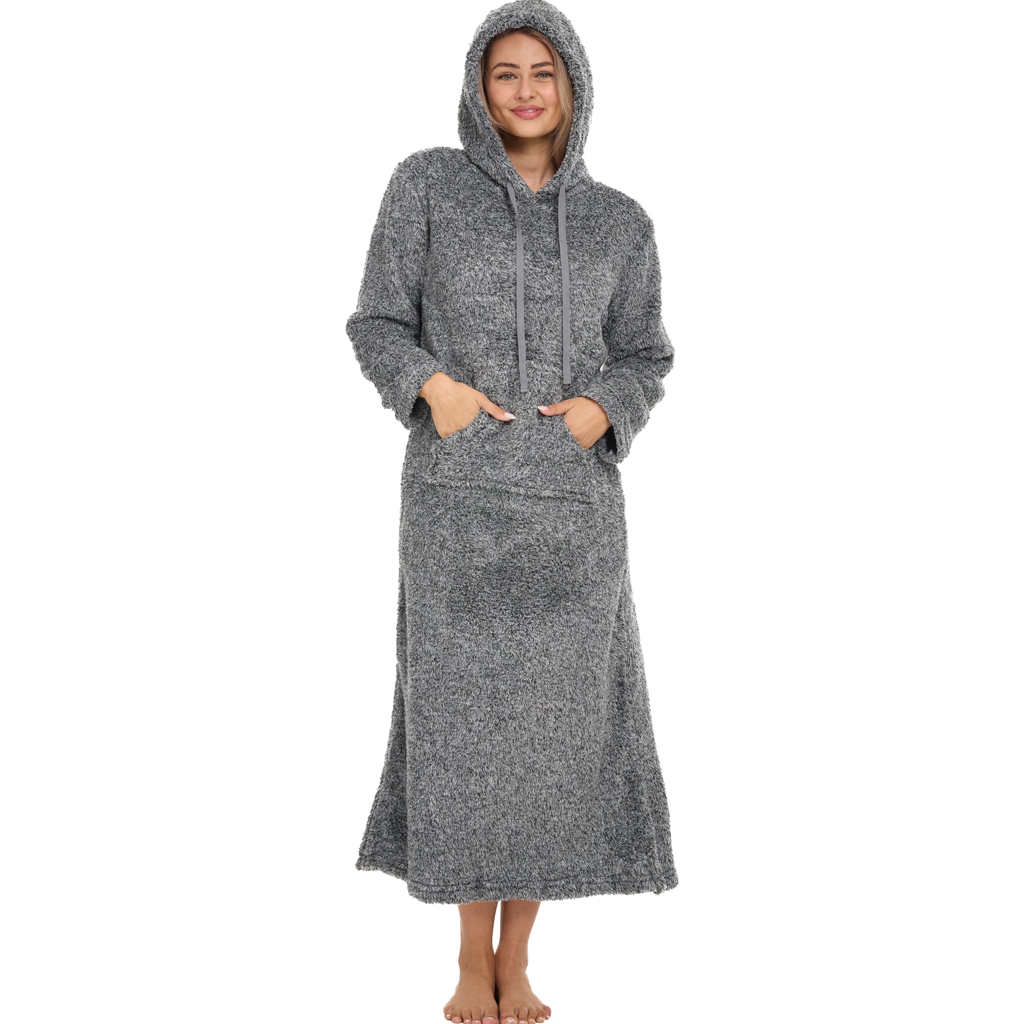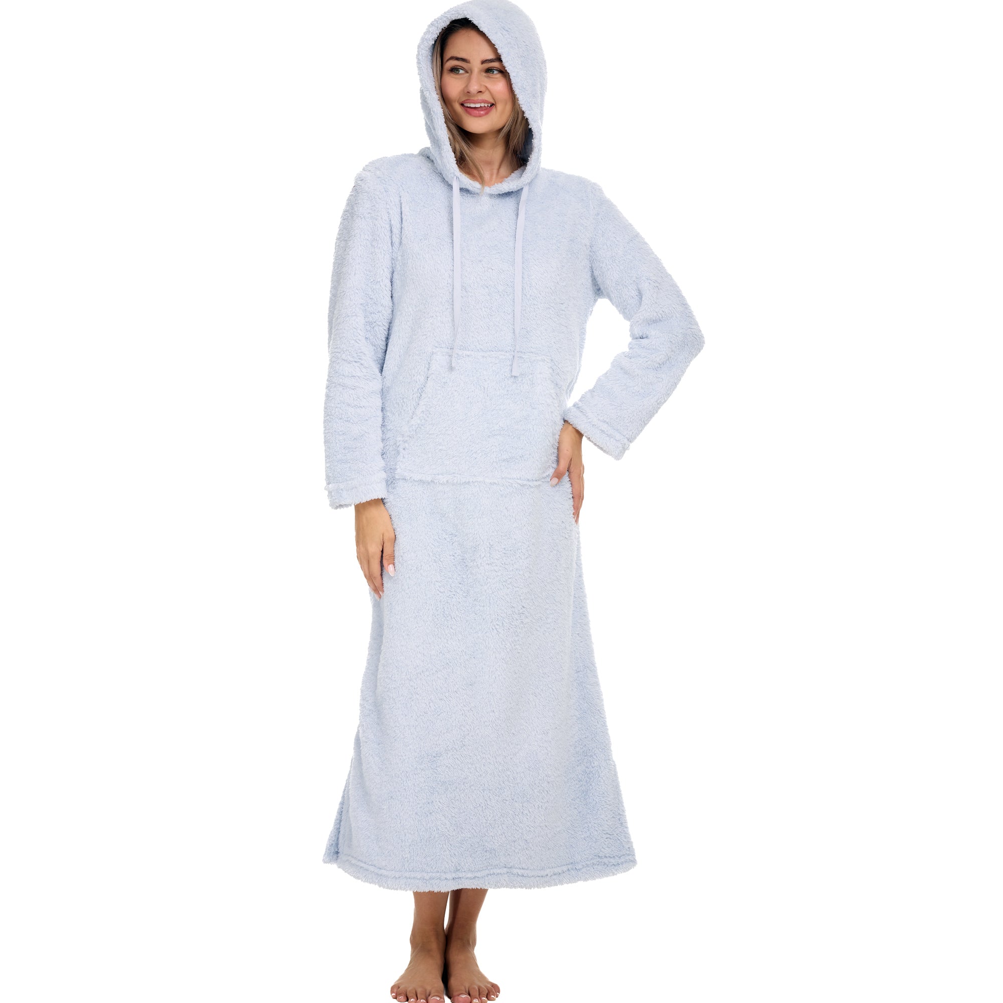 Women's Plush Sweatshirt Robe with Pockets, Long Hooded Fleece Duster Kaftan