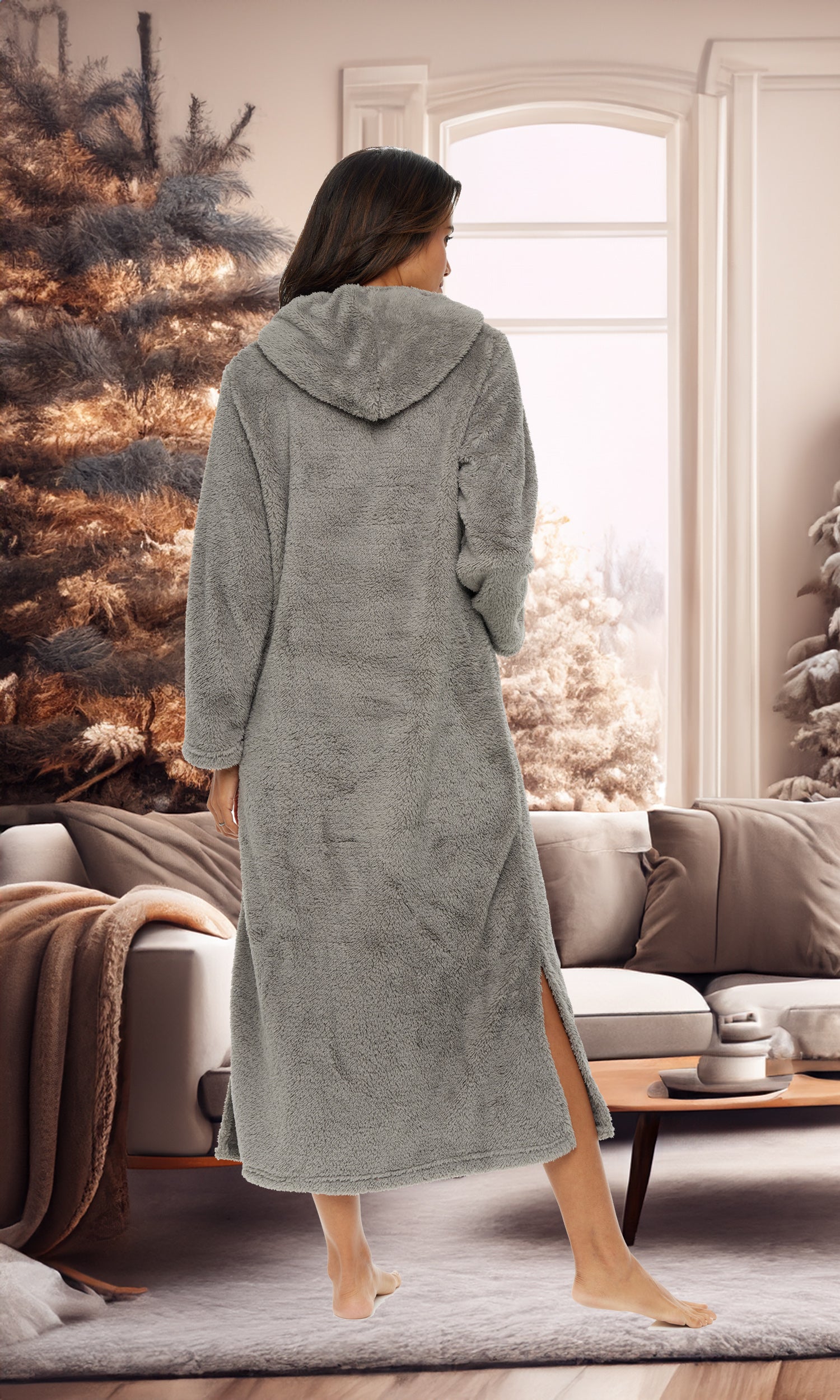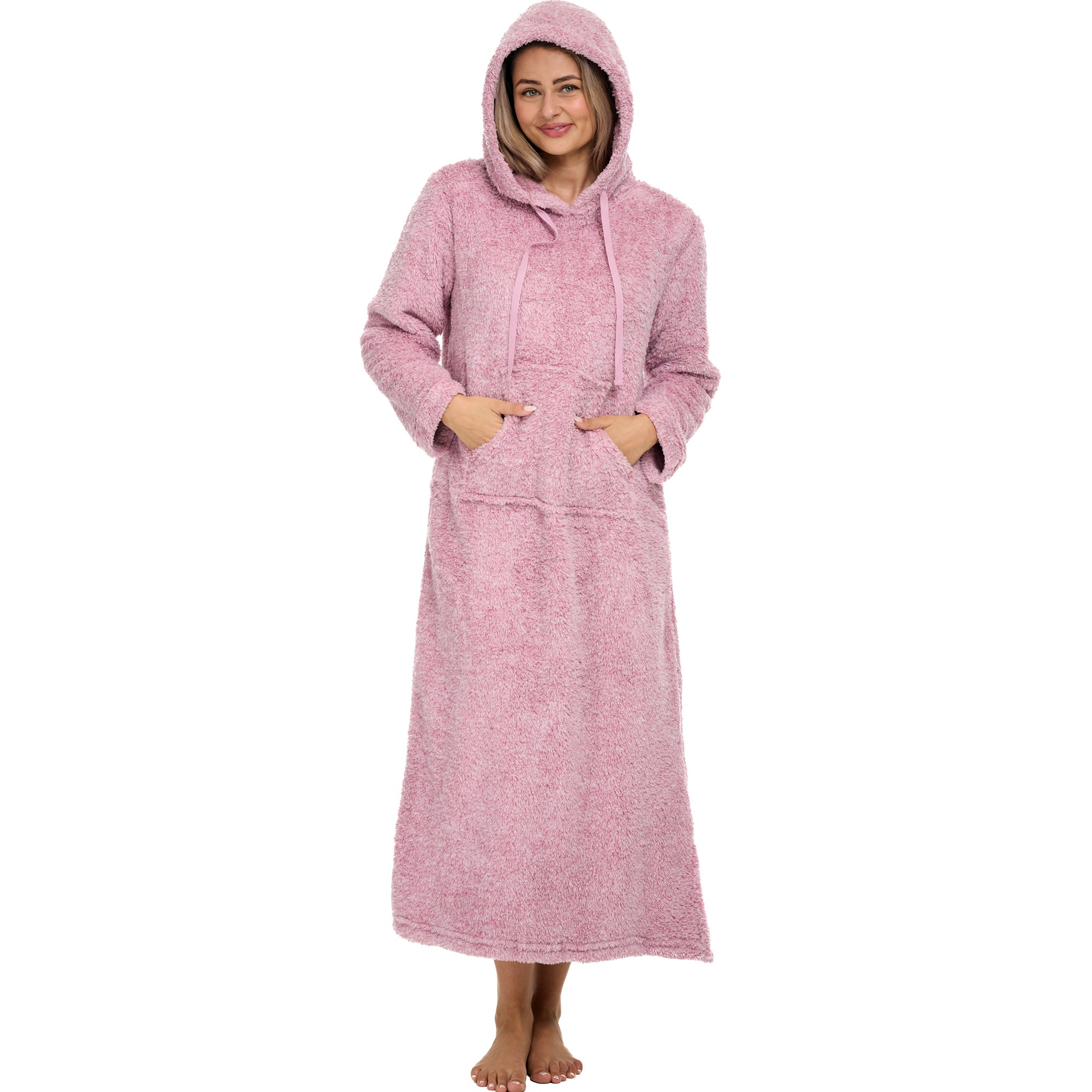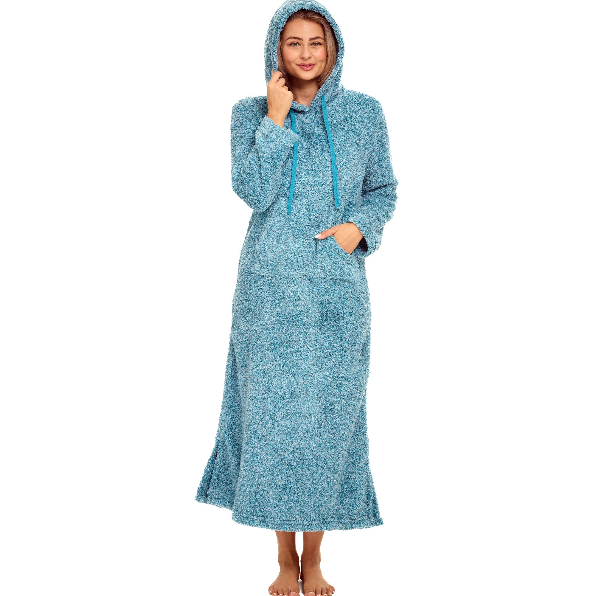 Women's Plush Sweatshirt Robe with Pockets, Long Hooded Fleece Duster Kaftan