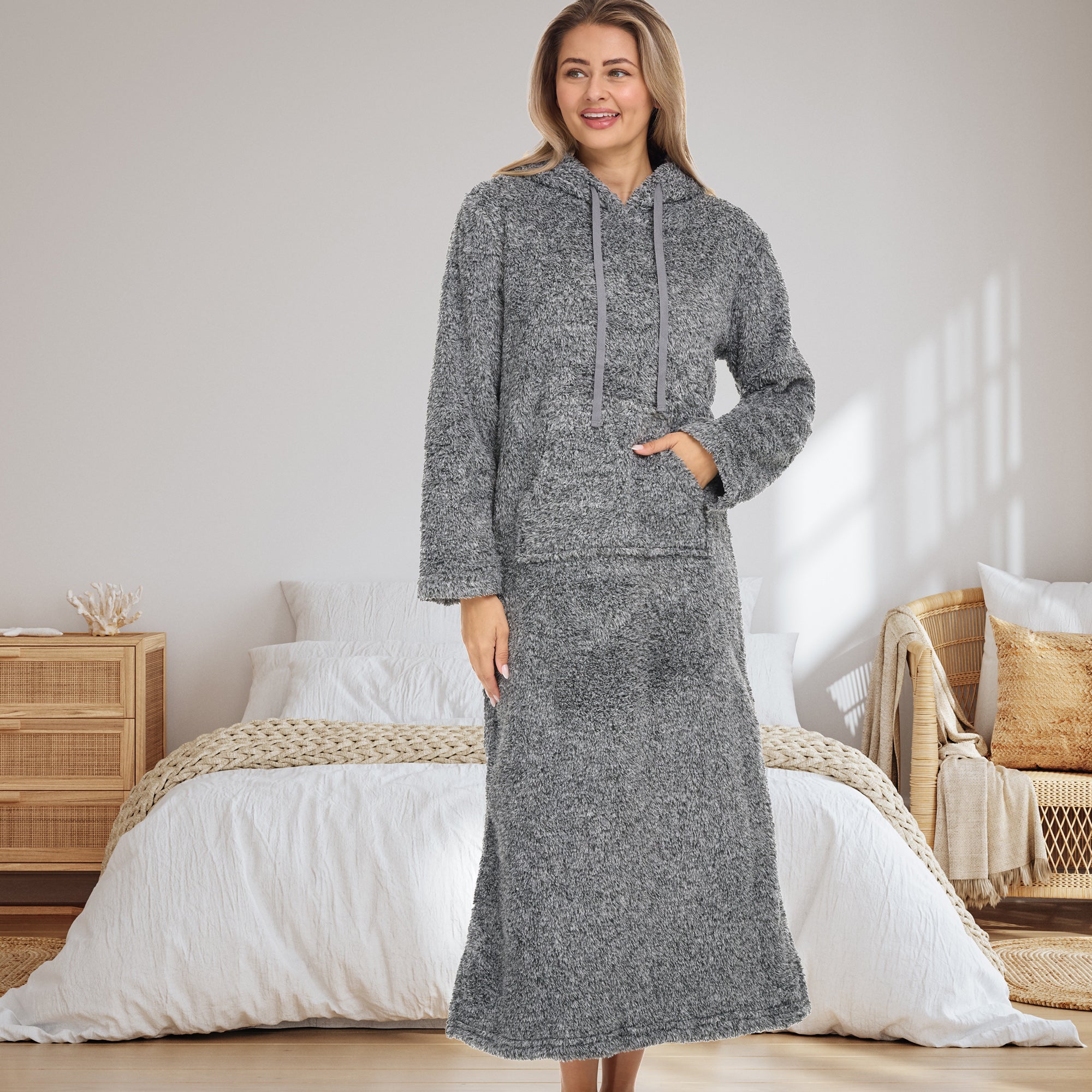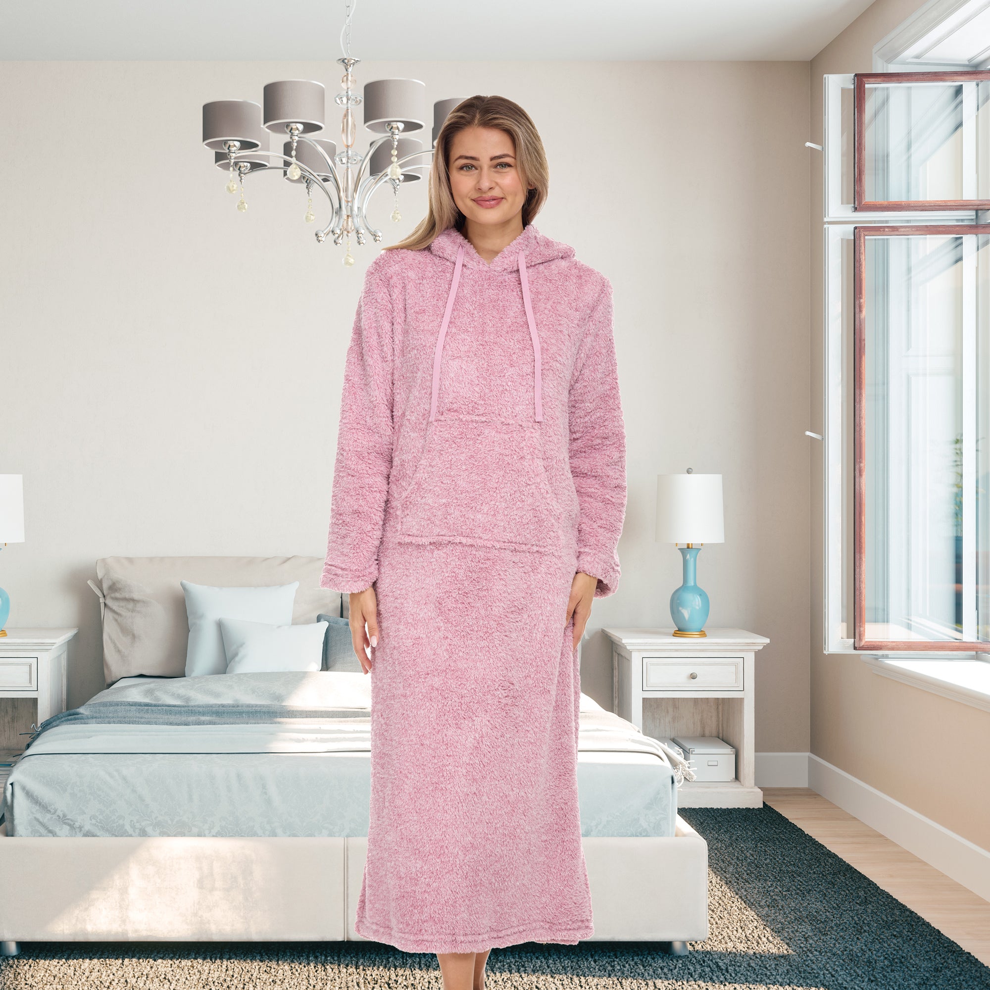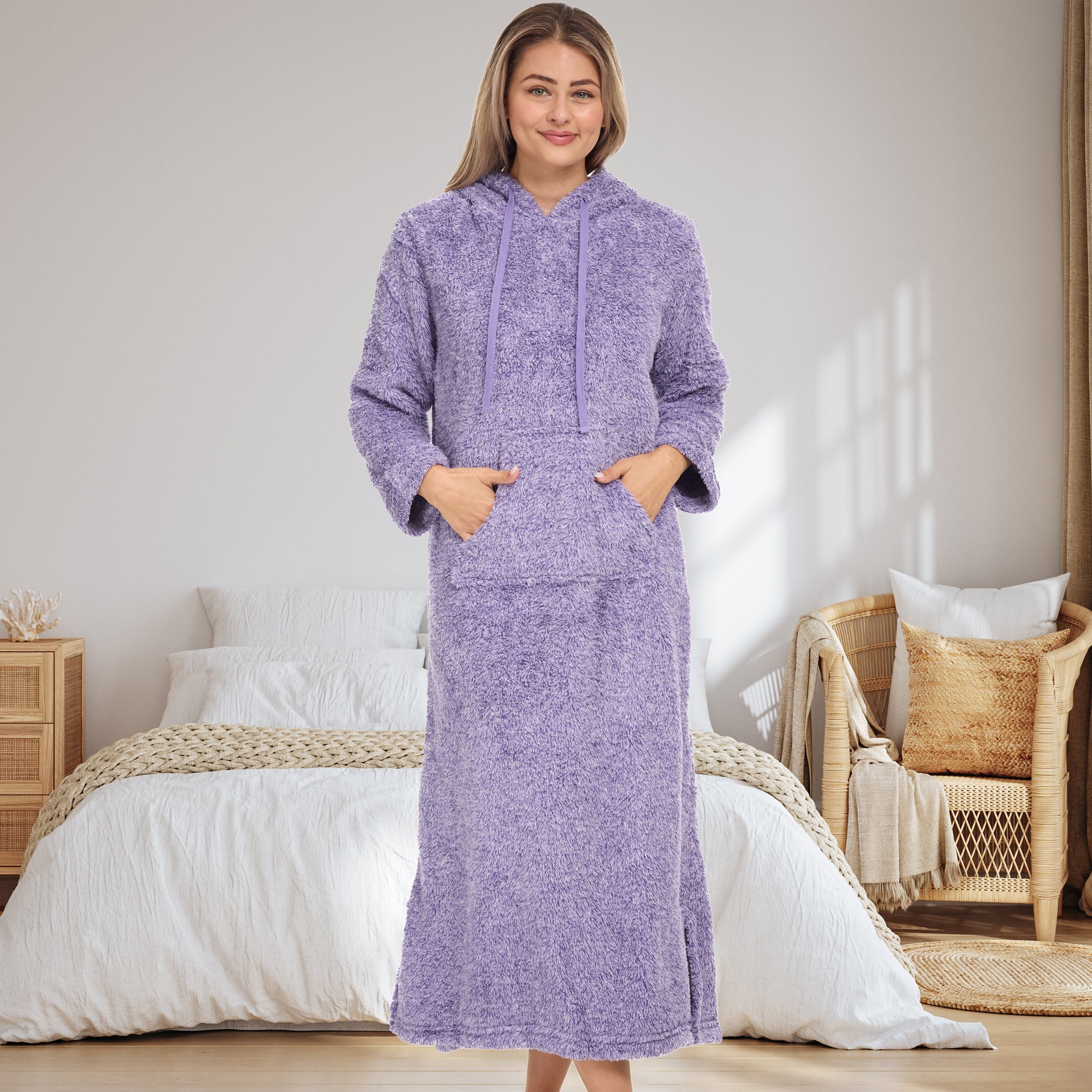 Adequate rest is invaluable to your overall health - and it is impossible to rest unless you are comfortable. That is why we have spent more than 10 years designing comfortable clothing to get you from dusk until dawn. Purchase this plush sweatshirt robe for women today and relax in comfort and style. This soft gown is made from plush fabric for a comfortable fit that will last. Our soft fleece is made using chemical free dyes and is machine washable without the risk of pilling or shedding. Features include High Quality 200 GSM Plush Fleece fabric - so that you can enjoy its soft and luxurious feel, Inactive, chemical free dyes - so that the colors Will not bleed or run, Machine wash and dry - so that you can enjoy an easy wash routine. Pre-shrunk fabric - so that you do not have to worry about this garment shrinking in the wash.