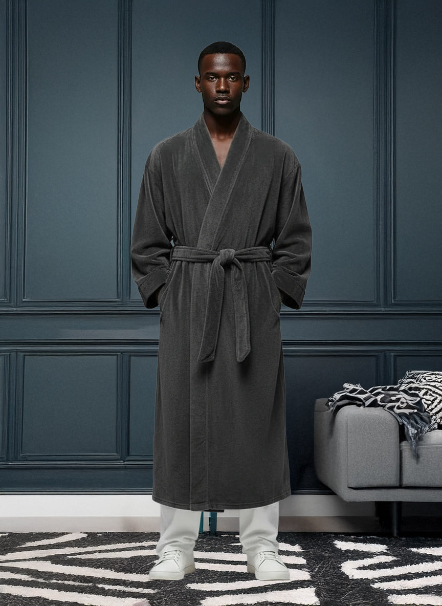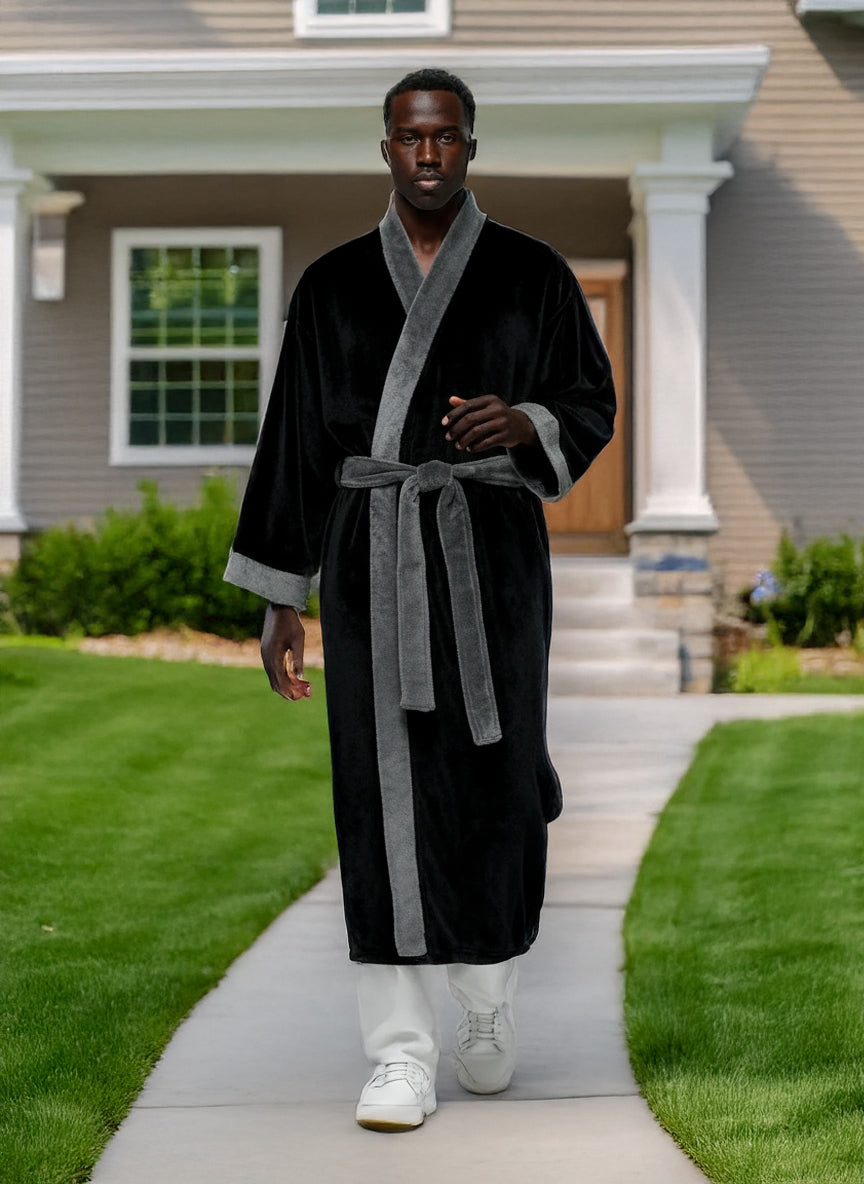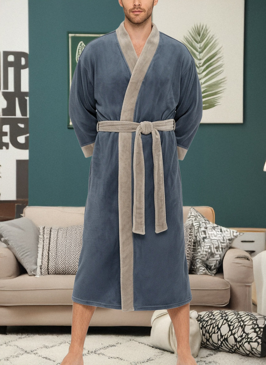 Immerse yourself in the world of ultimate comfort with the Alexander Del Rossa Men's Kimono Robe. This Japenese inspired, long lounge robe is not just a piece of clothing; it's a cocoon of coziness, a sanctuary of softness that transforms your everyday routine into a luxurious experience. Crafted from premium, plush fleece, this bathrobe is synonymous with warmth and comfort. Its sumptuous fleece fabric feels like a gentle hug, enveloping you in a layer of warmth that's perfect for those chilly mornings or relaxing evenings. The fleece is not only cozy but also durable, maintaining its softness and warmth wash after wash. The design of this robe reflects thoughtfulness and attention to detail. It's not just a bathrobe; it's a statement of comfort and luxury. The full-length design ensures that you are covered in plushness from head to toe, making it ideal for lounging around the house or after a soothing bath. Equipped with big pockets, this robe combines convenience with comfort. These spacious pockets are perfect for keeping your essentials close by, whether it's your phone, a good book, or simply a place to warm your hands. This bathrobe is more than just a piece of clothing; it's an experience, a treat to yourself that you truly deserve. It's a perfect gift for a loved one, a gesture that says you care about their comfort and well-being. With its combination of luxurious softness, warmth, and practicality, the Alexander Del Rossa Men's Kimono Robe is not just a purchase; it's an investment in your comfort and joy. Embrace the plush luxury, the cozy warmth, and the indulgent comfort. Transform your everyday moments into experiences of pure bliss with this exquisite fleece robe. It's not just a bathrobe; it's your personal retreat into the world of comfort and relaxation.