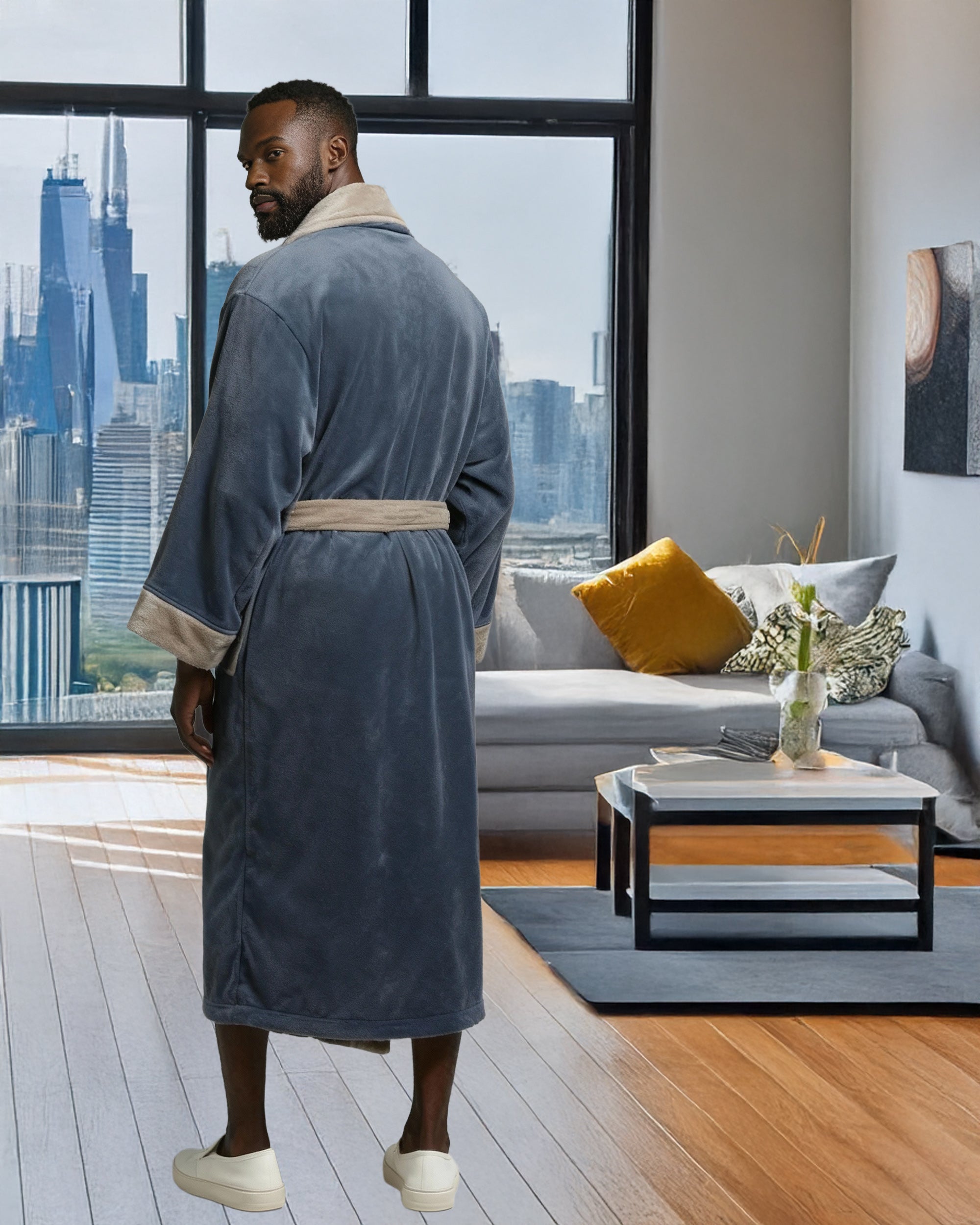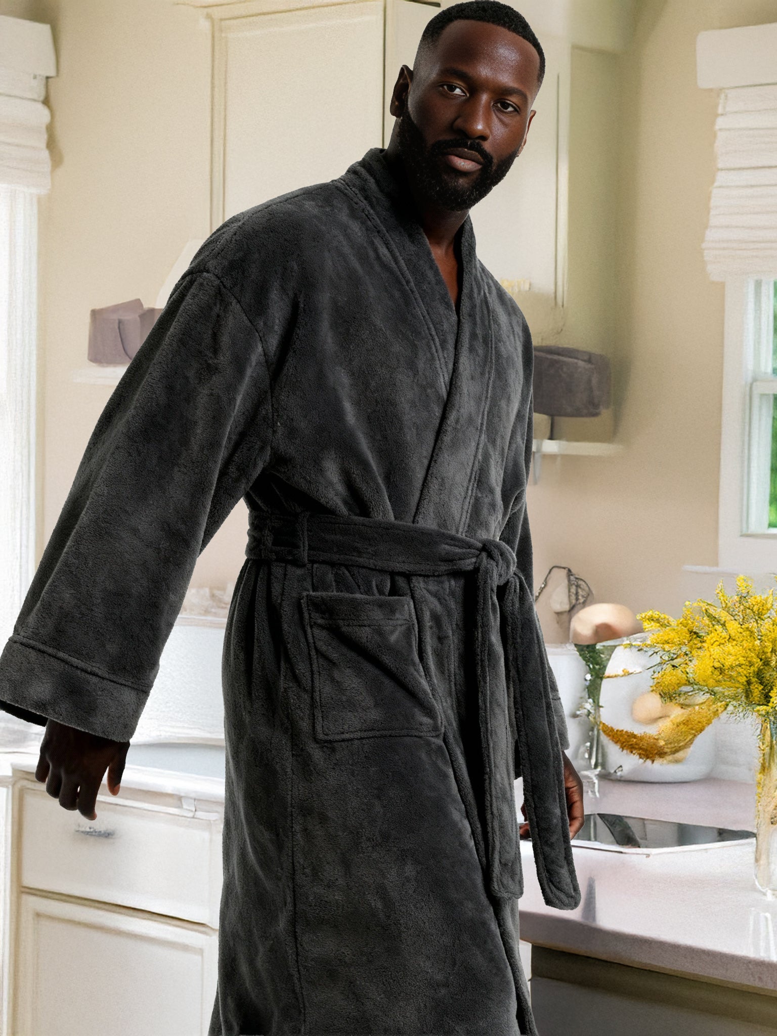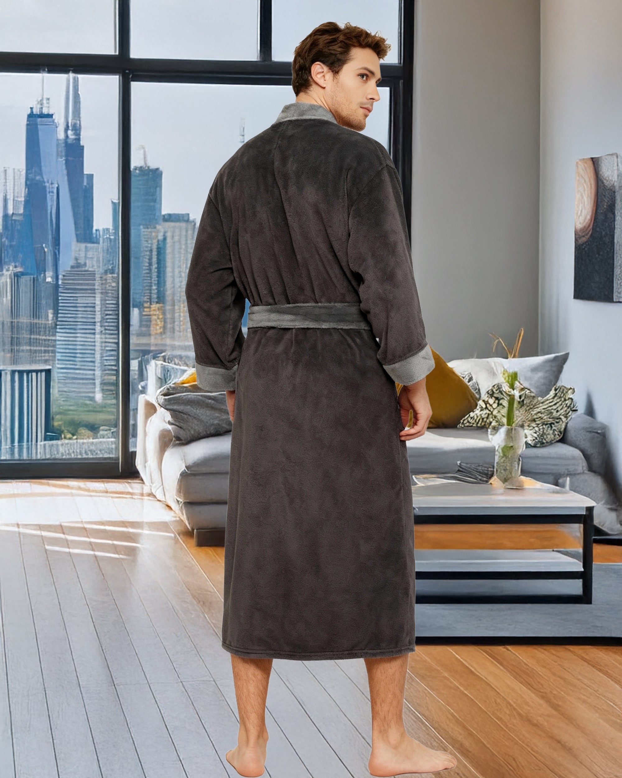 Immerse yourself in the world of ultimate comfort with the Alexander Del Rossa Men's Kimono Robe. This Japenese inspired, long lounge robe is not just a piece of clothing; it's a cocoon of coziness, a sanctuary of softness that transforms your everyday routine into a luxurious experience. Crafted from premium, plush fleece, this bathrobe is synonymous with warmth and comfort. Its sumptuous fleece fabric feels like a gentle hug, enveloping you in a layer of warmth that's perfect for those chilly mornings or relaxing evenings. The fleece is not only cozy but also durable, maintaining its softness and warmth wash after wash. The design of this robe reflects thoughtfulness and attention to detail. It's not just a bathrobe; it's a statement of comfort and luxury. The full-length design ensures that you are covered in plushness from head to toe, making it ideal for lounging around the house or after a soothing bath. Equipped with big pockets, this robe combines convenience with comfort. These spacious pockets are perfect for keeping your essentials close by, whether it's your phone, a good book, or simply a place to warm your hands. This bathrobe is more than just a piece of clothing; it's an experience, a treat to yourself that you truly deserve. It's a perfect gift for a loved one, a gesture that says you care about their comfort and well-being. With its combination of luxurious softness, warmth, and practicality, the Alexander Del Rossa Men's Kimono Robe is not just a purchase; it's an investment in your comfort and joy. Embrace the plush luxury, the cozy warmth, and the indulgent comfort. Transform your everyday moments into experiences of pure bliss with this exquisite fleece robe. It's not just a bathrobe; it's your personal retreat into the world of comfort and relaxation.