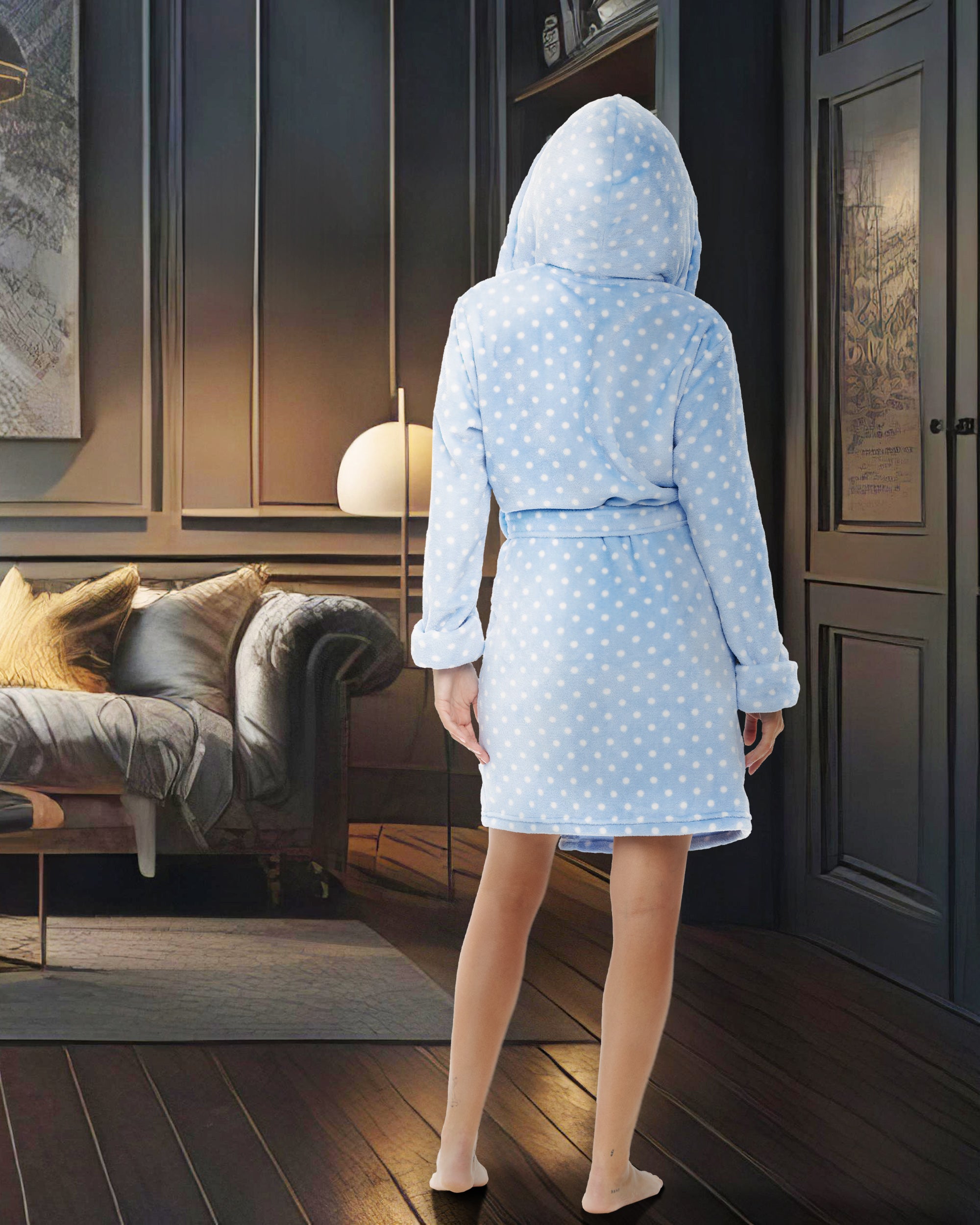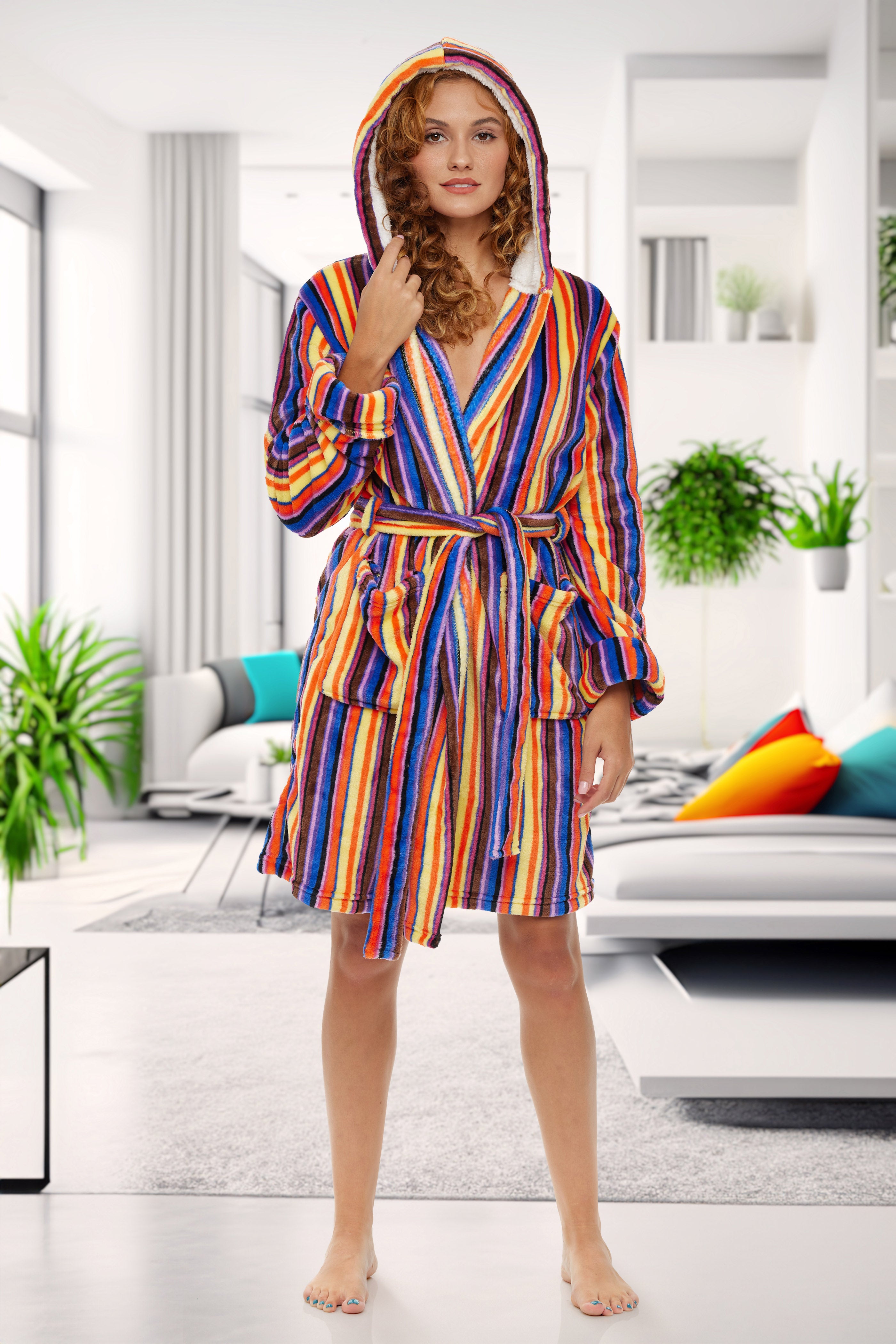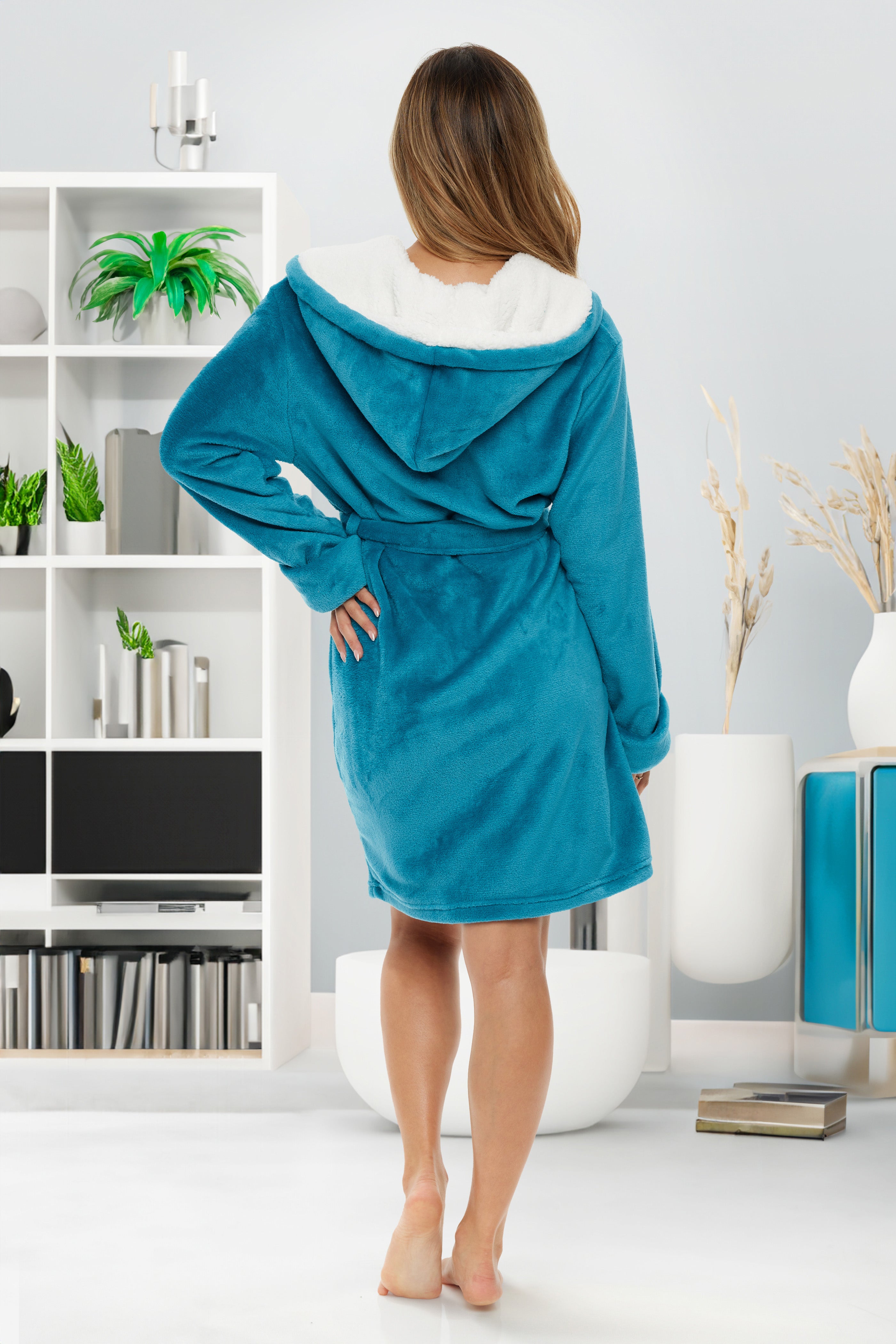 Women's Classic Plush Hooded Robe, Short Fleece Bathrobe Solids