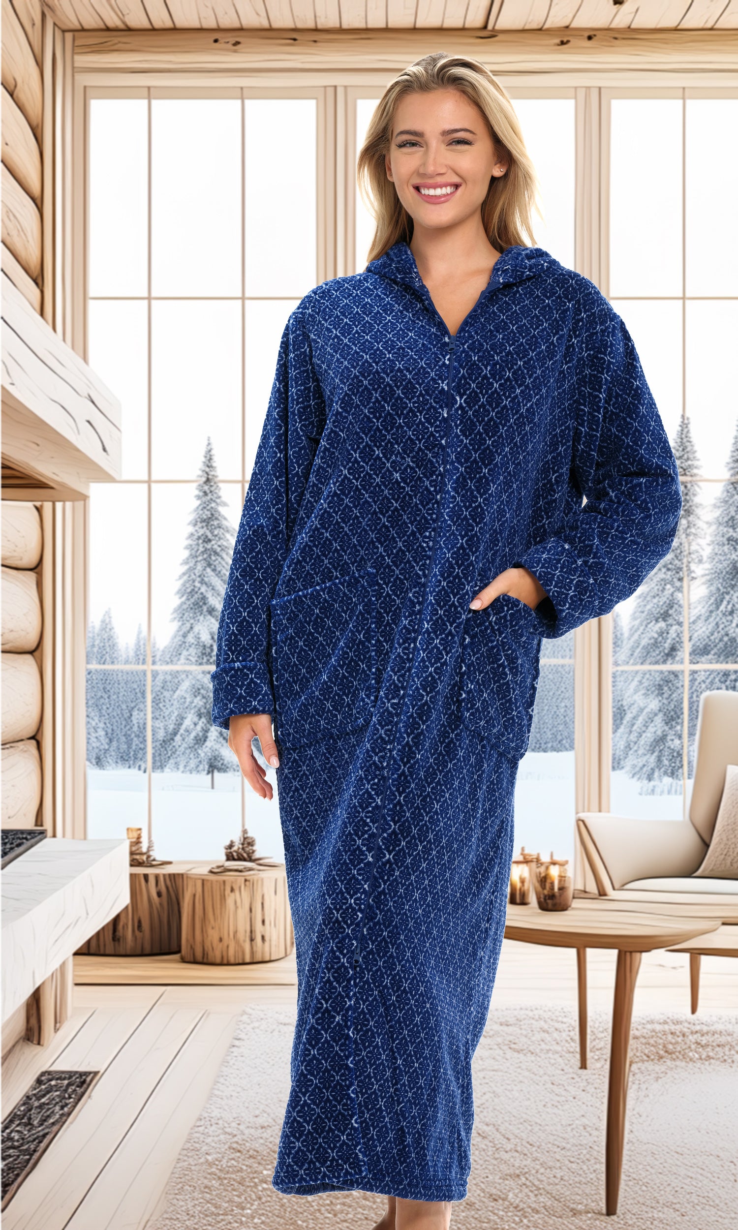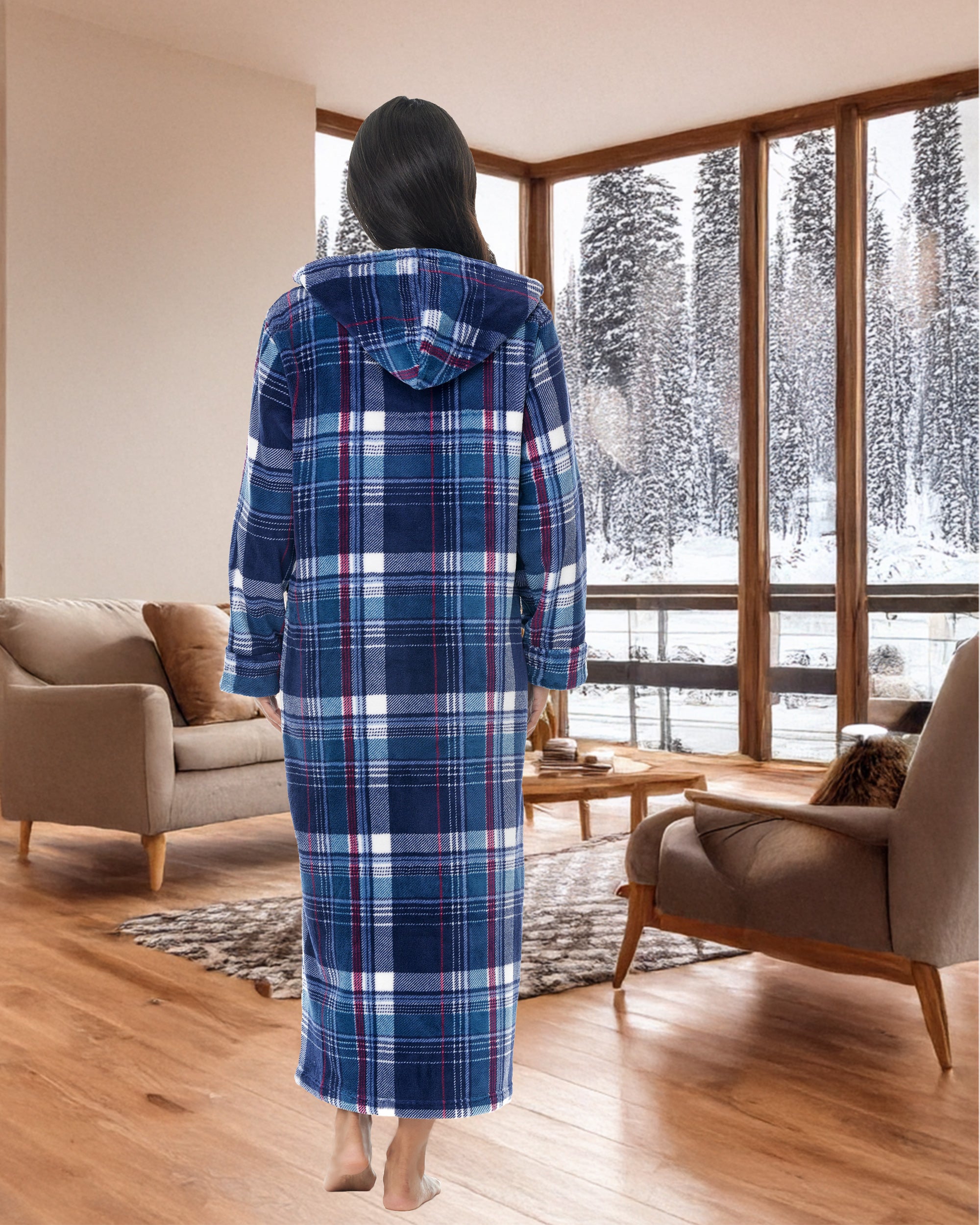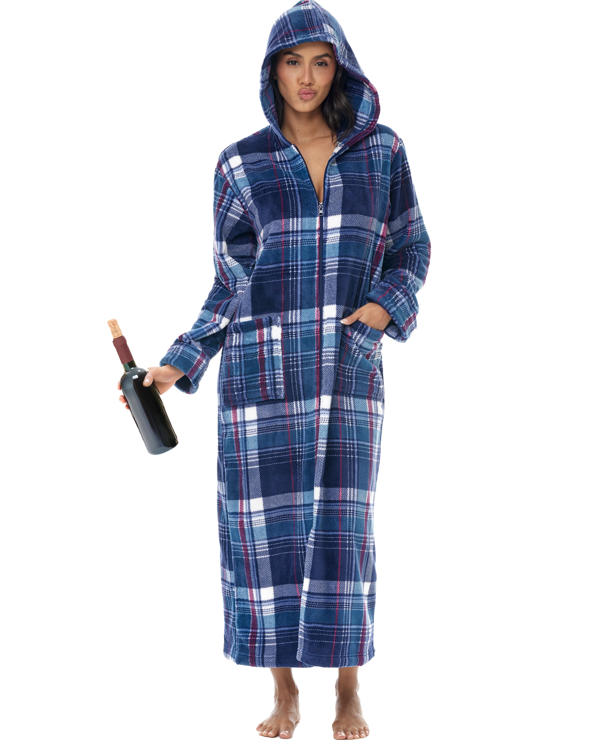 Immerse yourself in unparalleled comfort with hooded housecoats for women by Alexander del Rossa. This plush piece is more than just a bathrobe; it's a wearable blanket of warmth and luxury designed for women who cherish comfort without compromising style. Crafted from premium fleece, the womens robe with zipper front promises an incredibly soft and cozy experience, making it the perfect companion for those serene lounging moments at home. Featuring a convenient full-length zipper, this womens zip up robe with pockets combines practicality with elegance, allowing for easy wear and removal. The zip detail ensures you can quickly wrap yourself in warmth whether you're stepping out of the bath or lounging on a chilly evening. Plus, the inclusion of a plush collar adds an extra layer of warmth around the neck, elevating your comfort level. Not just for lounging, this zip up robe with hood is versatile enough to be a wearable blanket. Its fleece fabric is two times thicker than the average fleece robe, providing extra warmth and a soft, comfortable embrace that feels like a second skin. The oversized design ensures a comfortable fit for all body types, including plus sizes, guaranteeing every woman can enjoy the luxury of this exquisite robe. With large pockets, these womens bathrobe zipper front are as functional as the are stylish. womens zip front robes perfect for keeping your essentials close by, whether it's your smartphone, a small paperback, or your reading glasses. Now, you can enjoy the convenience of having everything you need at your fingertips while you're wrapped in comfort. Ideal for gift-giving, these housecoats for women zipper front make a thoughtful present for the special women in your life. Whether it's for your mother, sister, daughter, friend, or even yourself, it's a gift that embodies warmth, love, and relaxation. Available in a range of sizes, it ensures every woman can find her perfect fit and embrace the ultimate in home comfort.