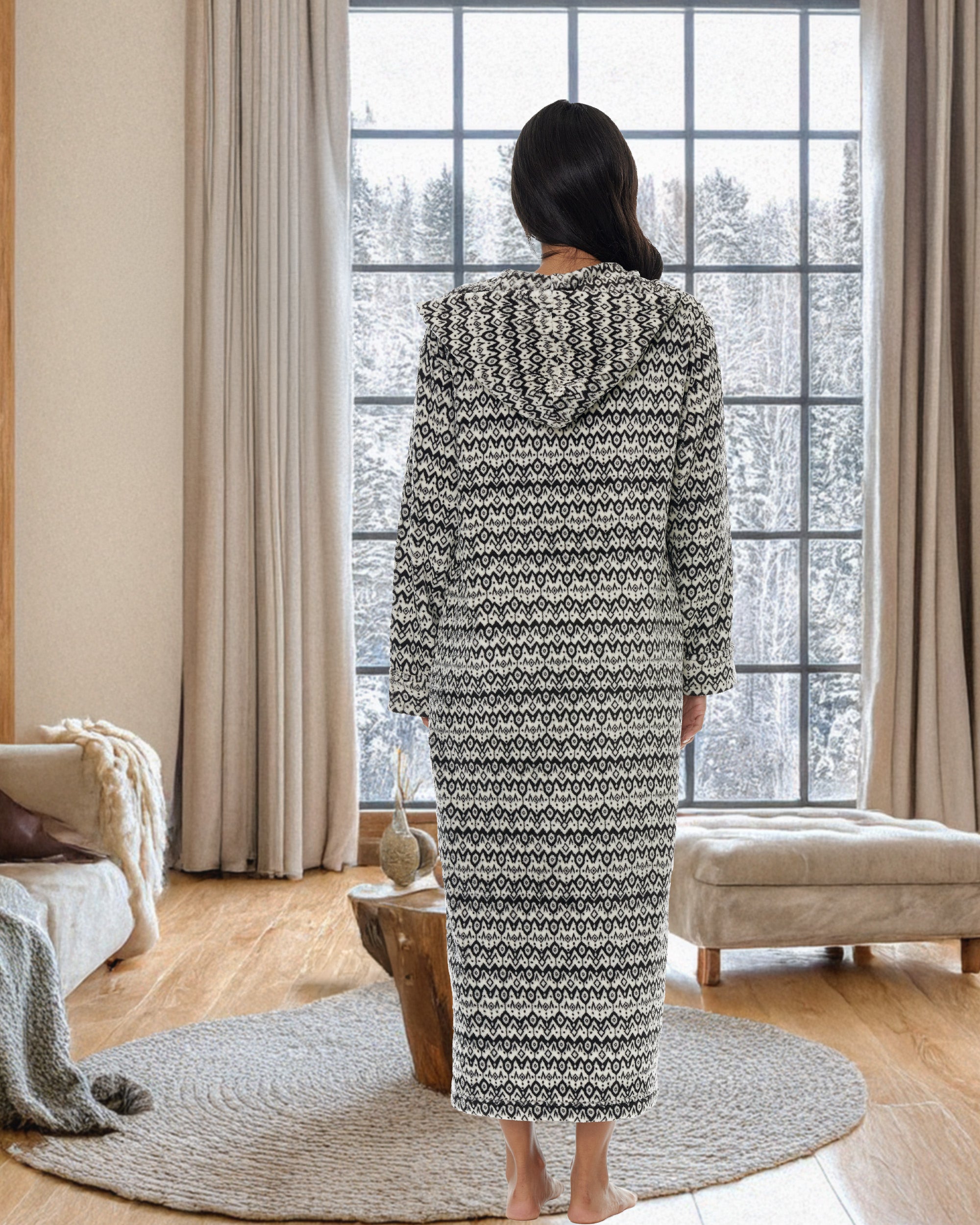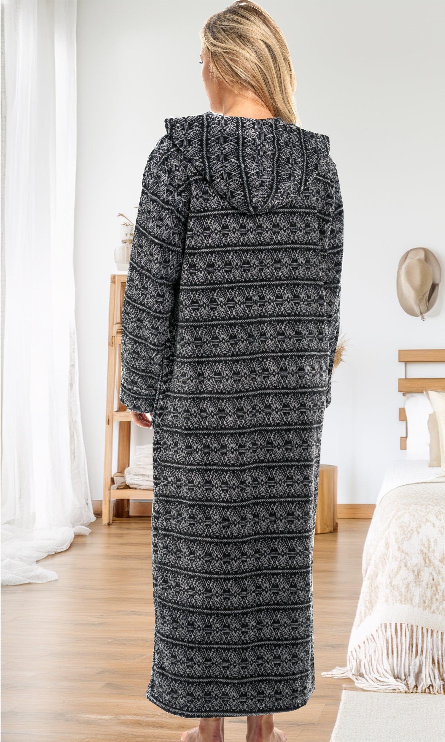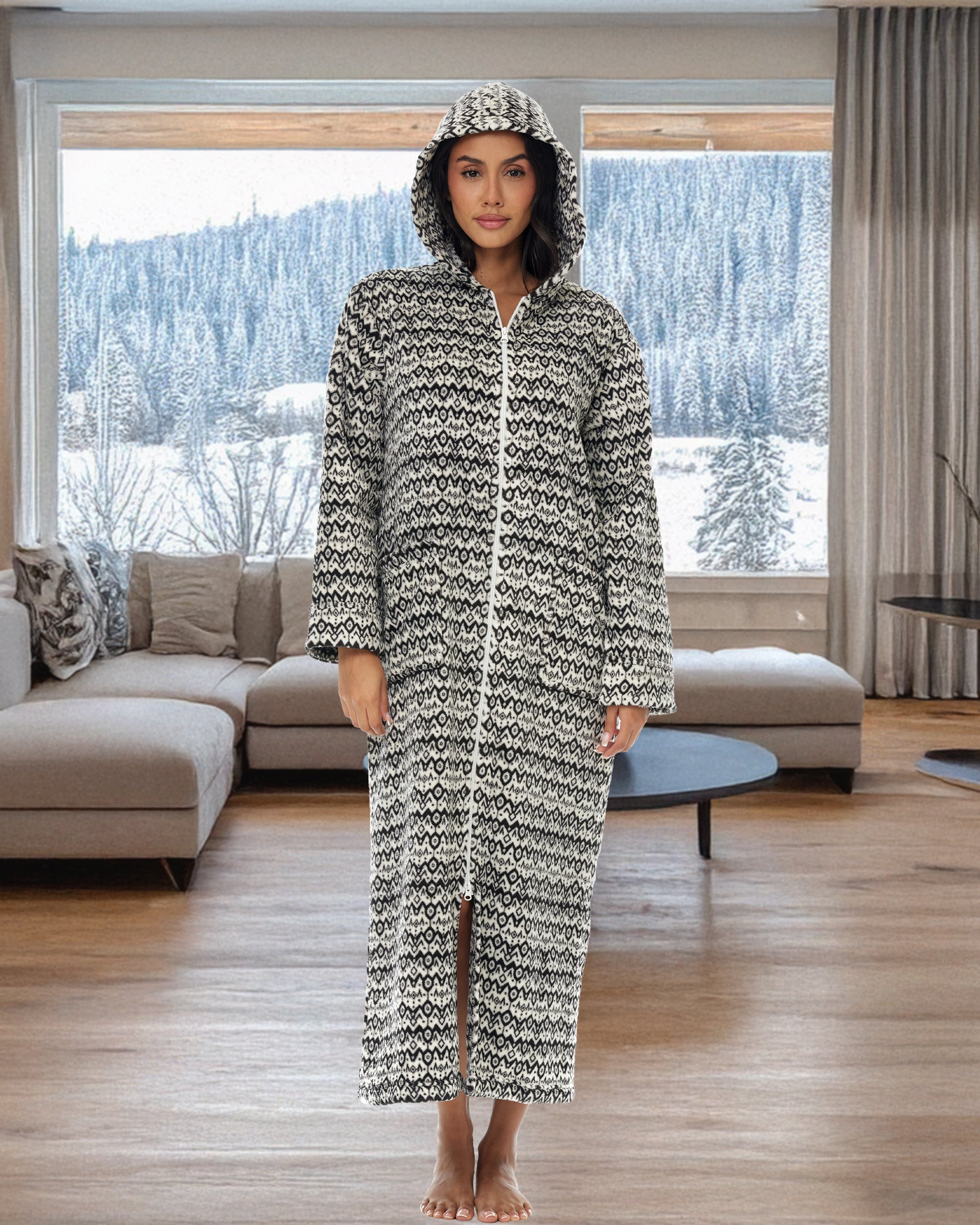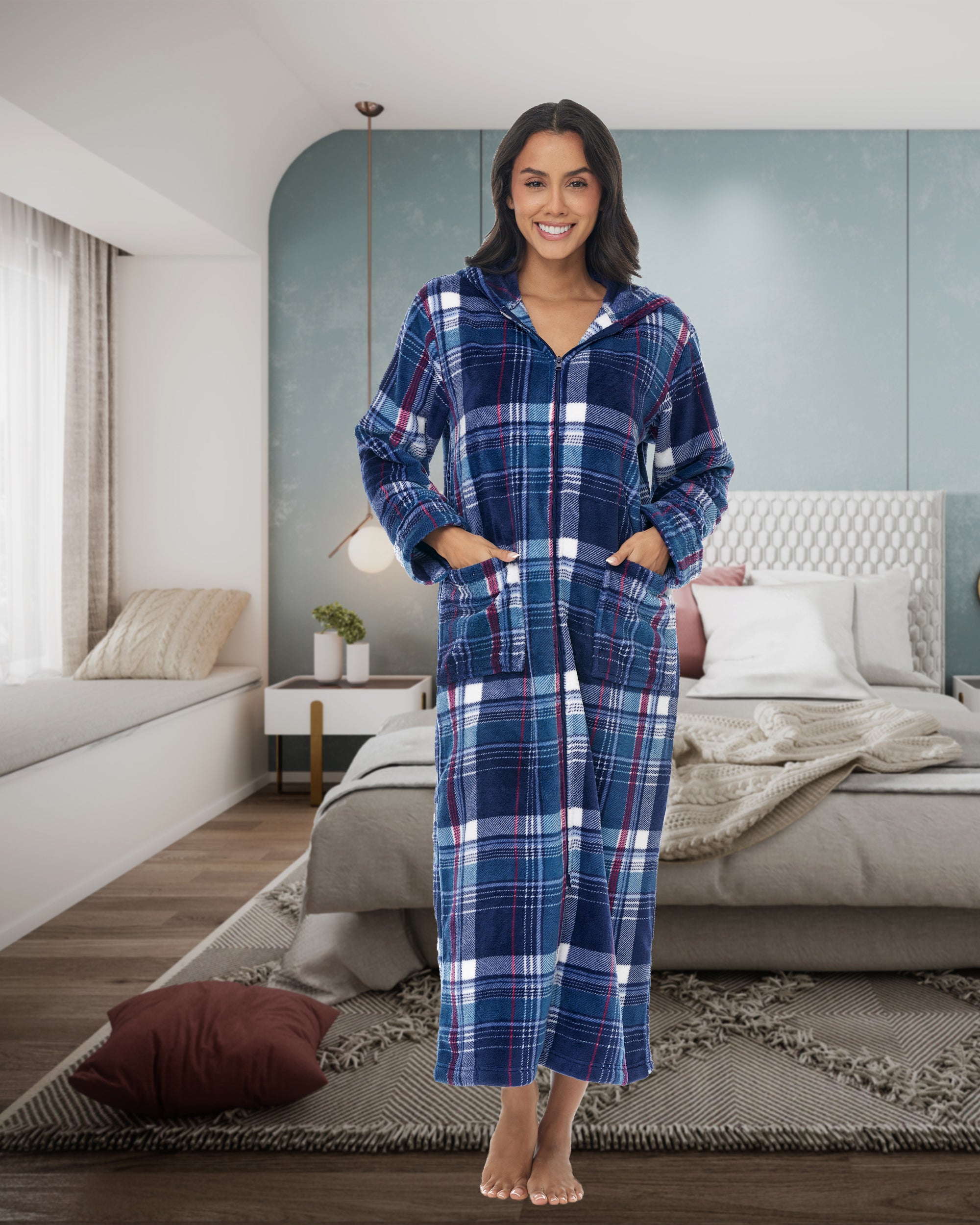 Immerse yourself in unparalleled comfort with hooded housecoats for women by Alexander del Rossa. This plush piece is more than just a bathrobe; it's a wearable blanket of warmth and luxury designed for women who cherish comfort without compromising style. Crafted from premium fleece, the womens robe with zipper front promises an incredibly soft and cozy experience, making it the perfect companion for those serene lounging moments at home. Featuring a convenient full-length zipper, this womens zip up robe with pockets combines practicality with elegance, allowing for easy wear and removal. The zip detail ensures you can quickly wrap yourself in warmth whether you're stepping out of the bath or lounging on a chilly evening. Plus, the inclusion of a plush collar adds an extra layer of warmth around the neck, elevating your comfort level. Not just for lounging, this zip up robe with hood is versatile enough to be a wearable blanket. Its fleece fabric is two times thicker than the average fleece robe, providing extra warmth and a soft, comfortable embrace that feels like a second skin. The oversized design ensures a comfortable fit for all body types, including plus sizes, guaranteeing every woman can enjoy the luxury of this exquisite robe. With large pockets, these womens bathrobe zipper front are as functional as the are stylish. womens zip front robes perfect for keeping your essentials close by, whether it's your smartphone, a small paperback, or your reading glasses. Now, you can enjoy the convenience of having everything you need at your fingertips while you're wrapped in comfort. Ideal for gift-giving, these housecoats for women zipper front make a thoughtful present for the special women in your life. Whether it's for your mother, sister, daughter, friend, or even yourself, it's a gift that embodies warmth, love, and relaxation. Available in a range of sizes, it ensures every woman can find her perfect fit and embrace the ultimate in home comfort.