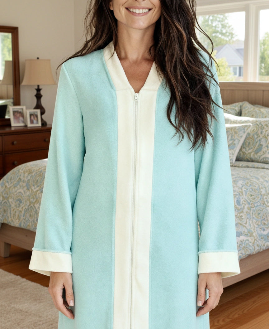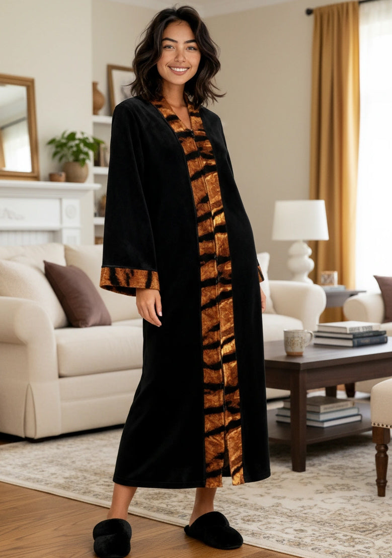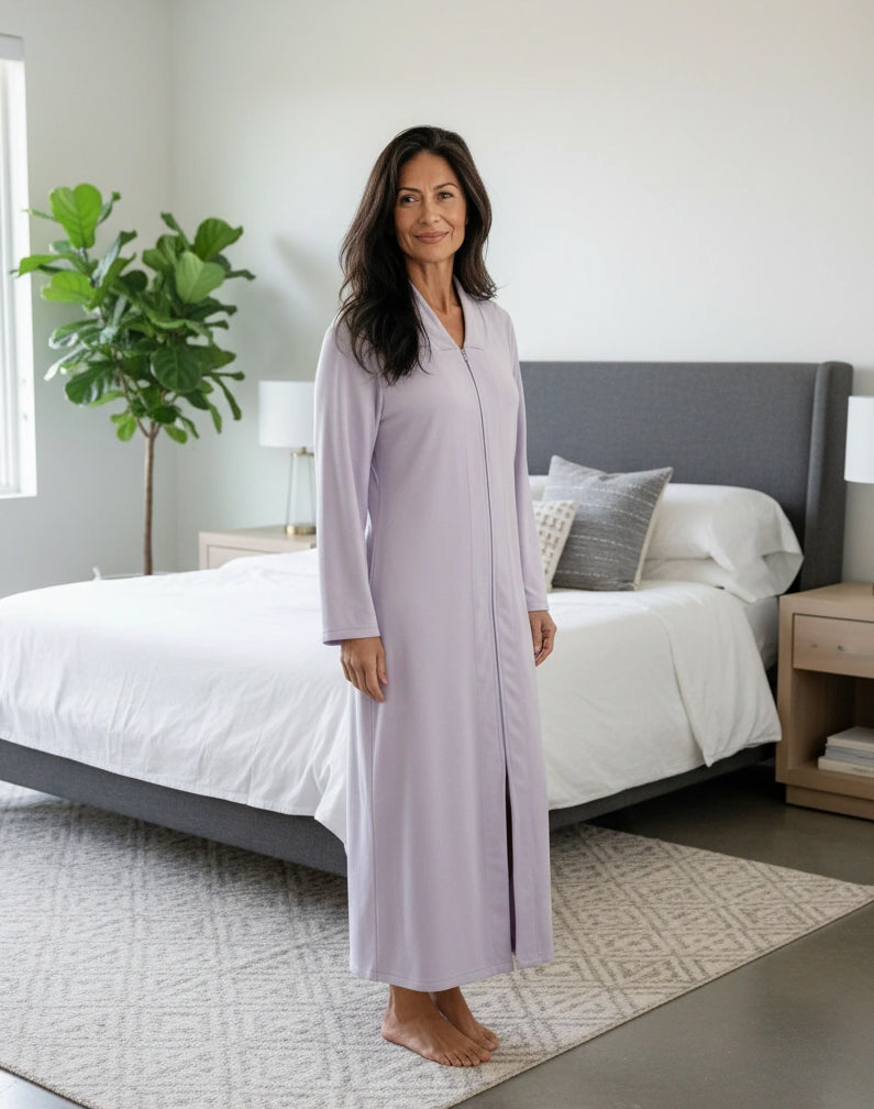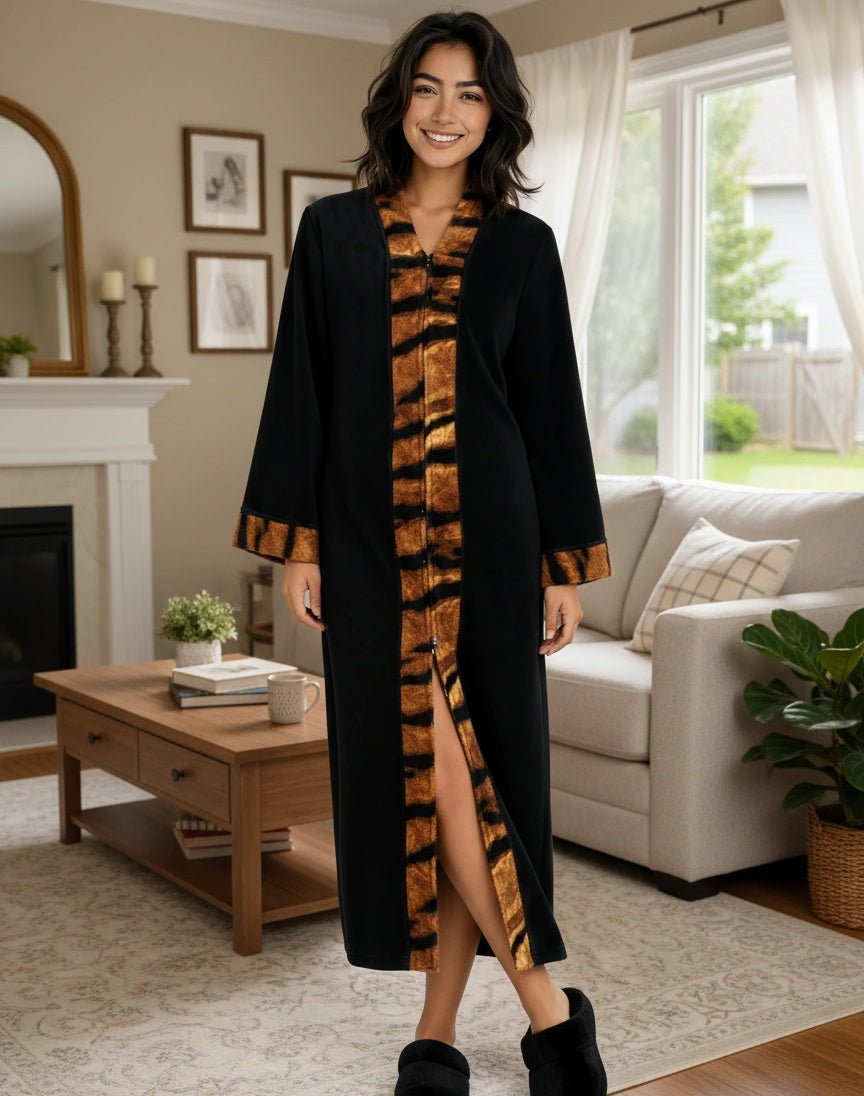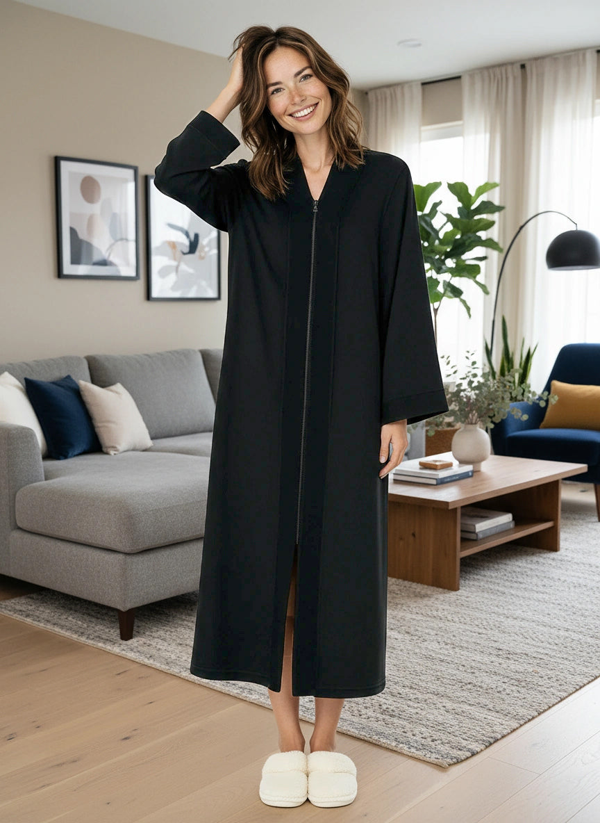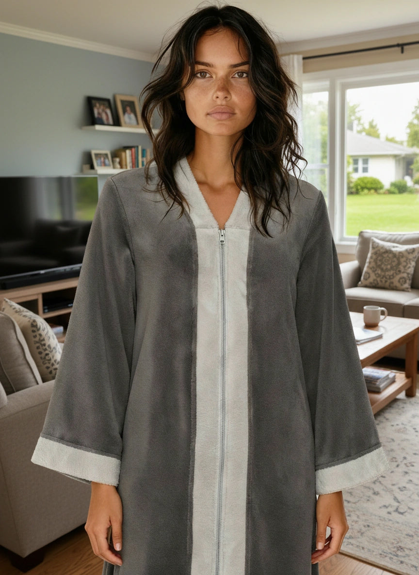 Womens Zip Up Kimono Robe, Japanese Robe for Women