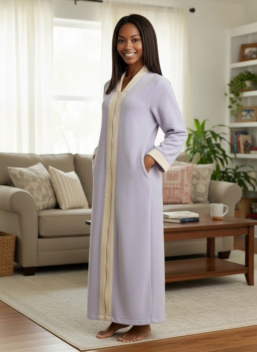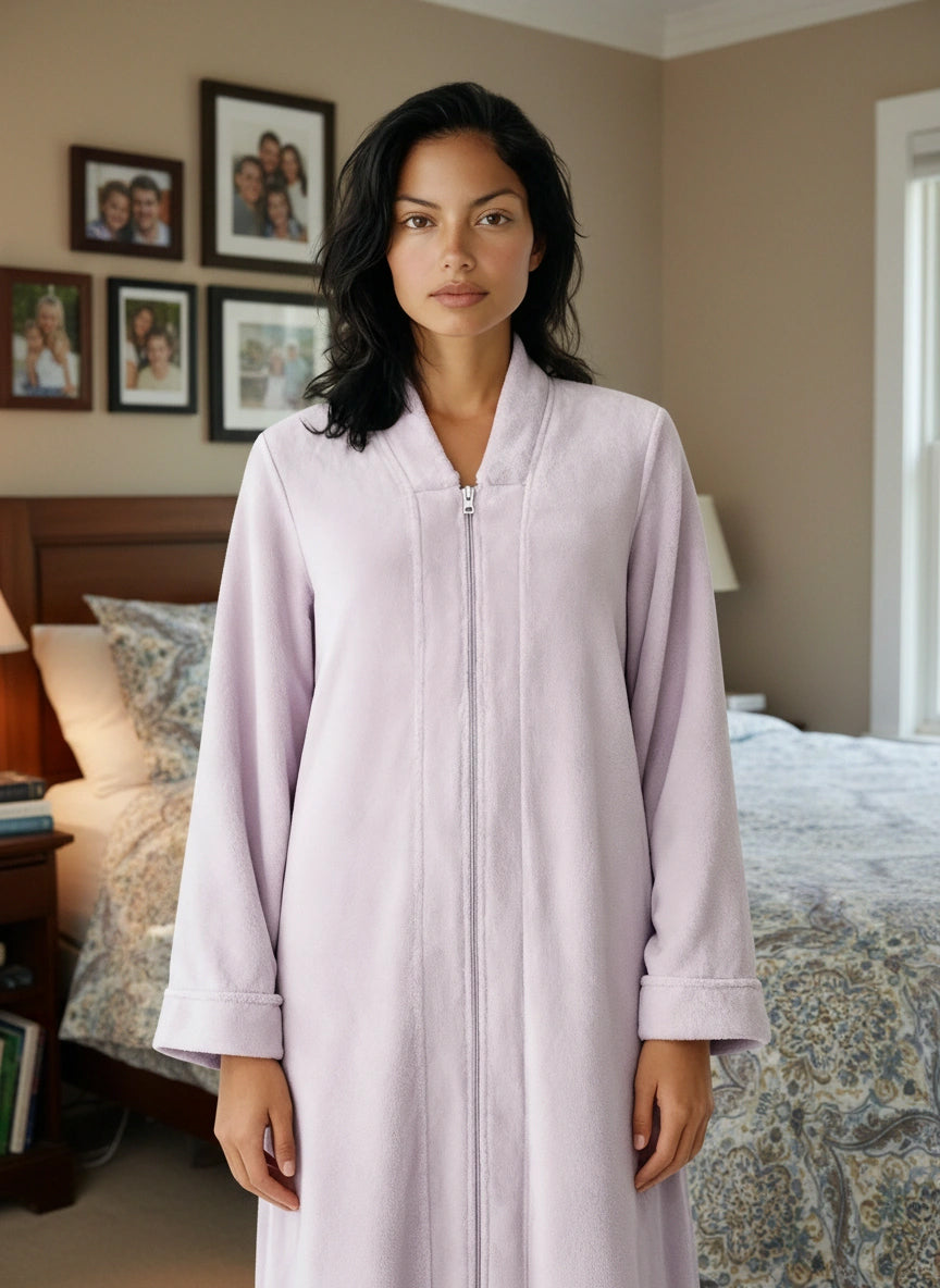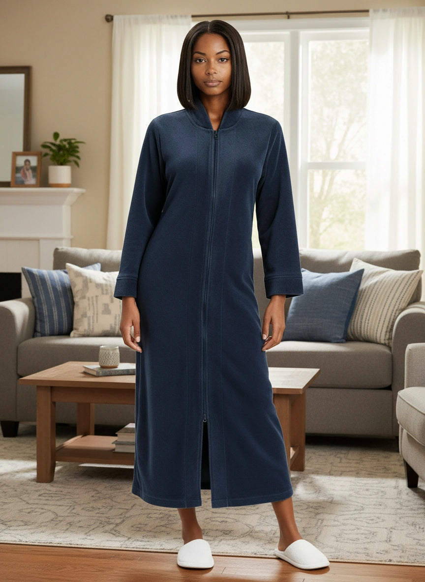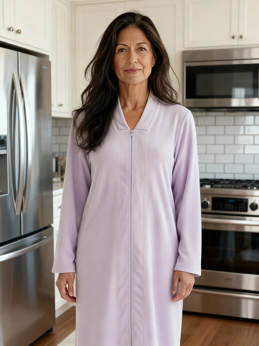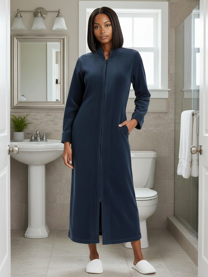 Immerse yourself in the world of ultimate comfort with the Alexander Del Rossa Women's Zip Up Fleece Kimono Robe. This long lounge robe with zipper is not just a piece of clothing; it's a cocoon of coziness, a sanctuary of softness that transforms your everyday routine into a luxurious experience. Crafted from premium, plush fleece, this Japanese robe style is synonymous with warmth and comfort. Its sumptuous fleece fabric feels like a gentle hug, enveloping you in a layer of warmth that's perfect for those chilly mornings or relaxing evenings. The fleece is not only cozy but also durable, maintaining its softness and warmth wash after wash. The design of this robe reflects thoughtfulness and attention to detail. It's not just a winter robe with zipper; it's a statement of comfort and luxury. The long kimono design ensures that you are covered in plushness from head to toe, making it ideal for lounging around the house or after a soothing bath. Equipped with big pockets, this zipper robe combines convenience with comfort. These spacious pockets are perfect for keeping your essentials close by, whether it's your phone, a good book, or simply a place to warm your hands. This Japanese robe is more than just a piece of clothing; it's an experience, a treat to yourself that you truly deserve. It's a perfect gift for a loved one, a gesture that says you care about their comfort and well-being. With its combination of luxurious softness, warmth, and practicality, the Alexander Del Rossa fleece zipper kimono robe is not just a purchase; it's an investment in your comfort and joy. Embrace the plush luxury, the cozy warmth, and the indulgent comfort. Transform your everyday moments into experiences of pure bliss with this exquisite fleece robe.