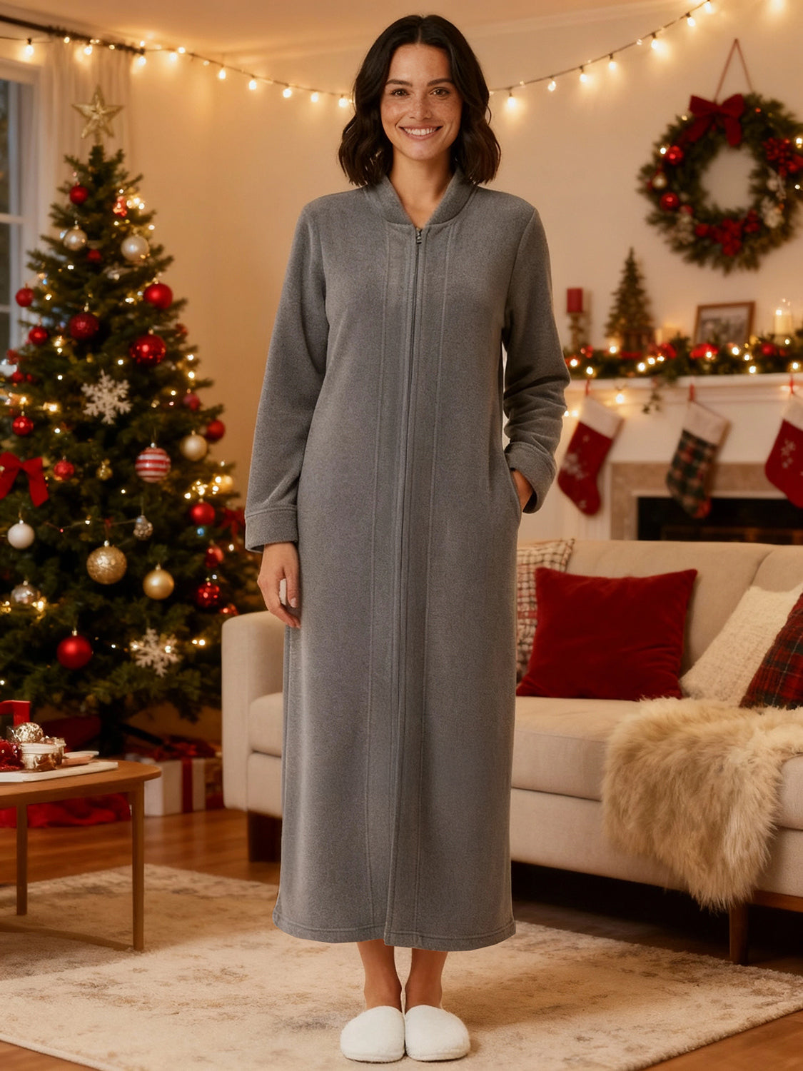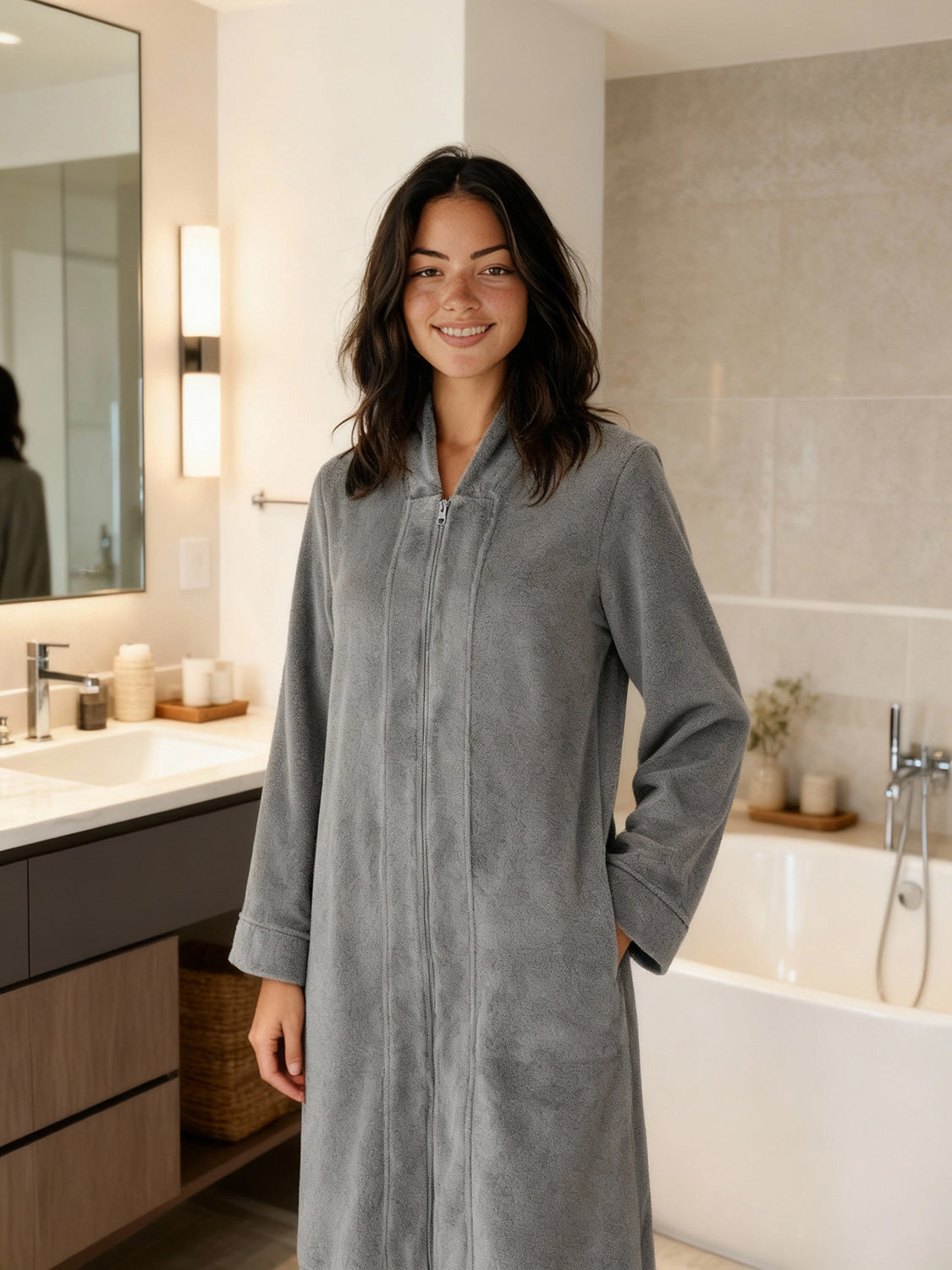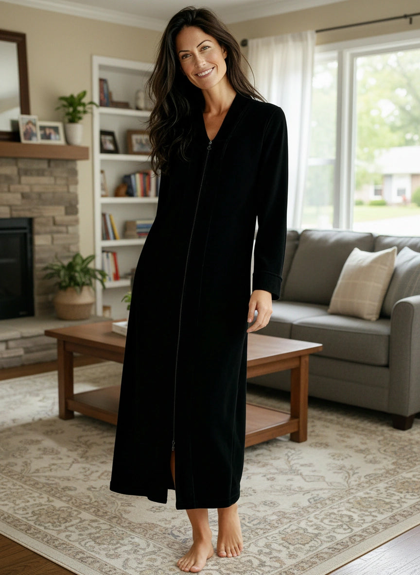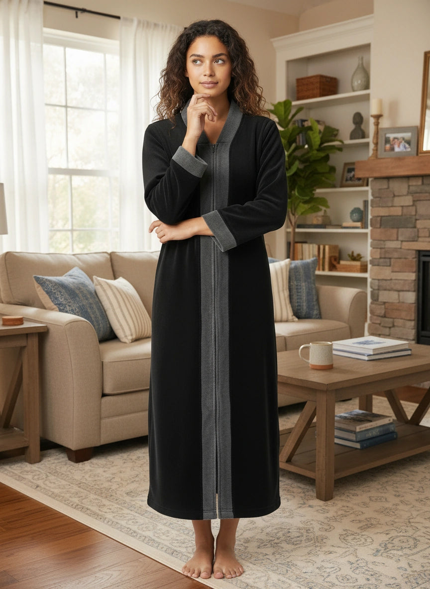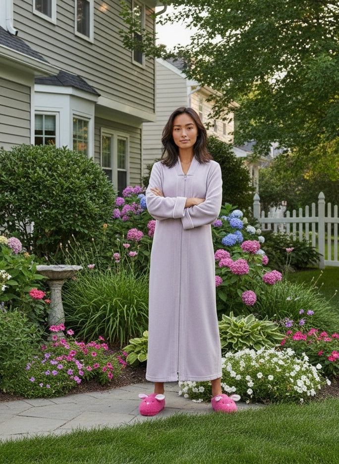 Immerse yourself in the world of ultimate comfort with the Alexander Del Rossa Women's Zip Up Fleece Kimono Robe. This long lounge robe with zipper is not just a piece of clothing; it's a cocoon of coziness, a sanctuary of softness that transforms your everyday routine into a luxurious experience. Crafted from premium, plush fleece, this Japanese robe style is synonymous with warmth and comfort. Its sumptuous fleece fabric feels like a gentle hug, enveloping you in a layer of warmth that's perfect for those chilly mornings or relaxing evenings. The fleece is not only cozy but also durable, maintaining its softness and warmth wash after wash. The design of this robe reflects thoughtfulness and attention to detail. It's not just a winter robe with zipper; it's a statement of comfort and luxury. The long kimono design ensures that you are covered in plushness from head to toe, making it ideal for lounging around the house or after a soothing bath. Equipped with big pockets, this zipper robe combines convenience with comfort. These spacious pockets are perfect for keeping your essentials close by, whether it's your phone, a good book, or simply a place to warm your hands. This Japanese robe is more than just a piece of clothing; it's an experience, a treat to yourself that you truly deserve. It's a perfect gift for a loved one, a gesture that says you care about their comfort and well-being. With its combination of luxurious softness, warmth, and practicality, the Alexander Del Rossa fleece zipper kimono robe is not just a purchase; it's an investment in your comfort and joy. Embrace the plush luxury, the cozy warmth, and the indulgent comfort. Transform your everyday moments into experiences of pure bliss with this exquisite fleece robe.