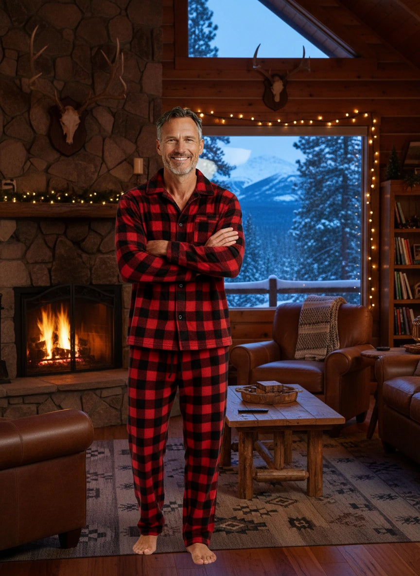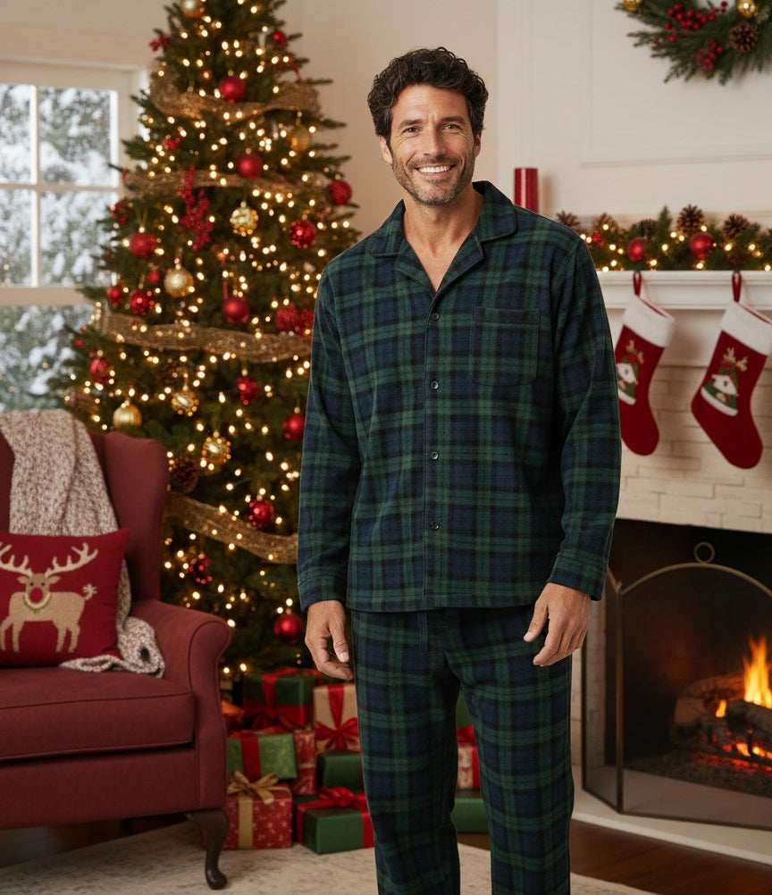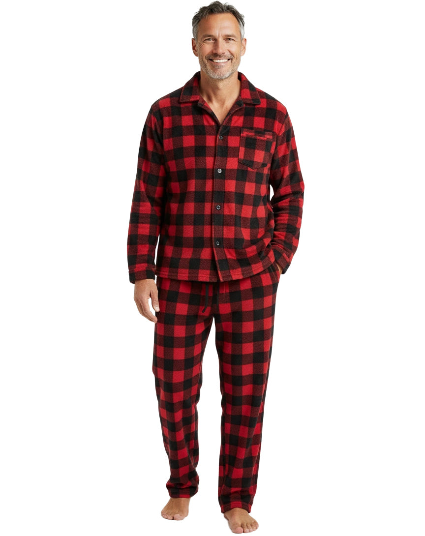 Men's Plush Fleece Pajamas Set, Button Down PJs for Winter