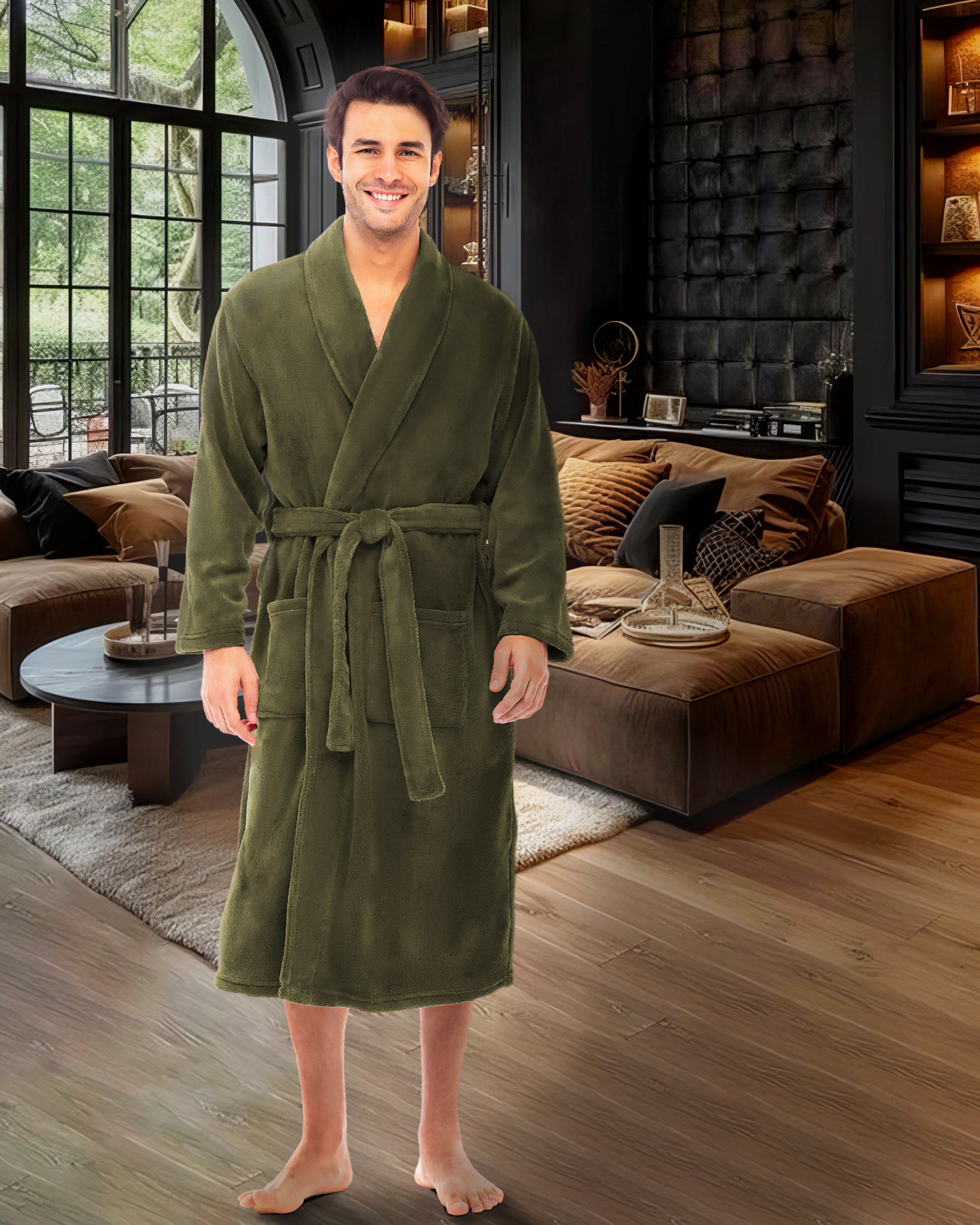 Men's Classic Winter Robe, Plush Fleece Bathrobe